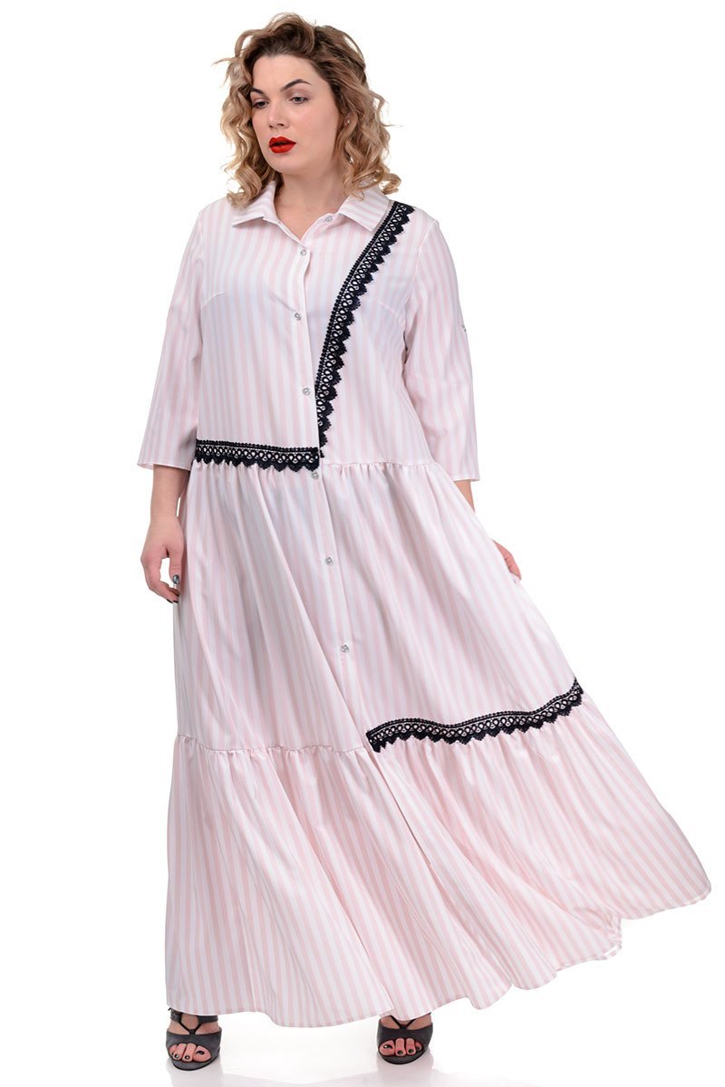 Удлиненное повседневное платье свободного кроя. Изделие имеет рубашечный воротник и застегивается на 7 пуговиц. Рукав можно отвернуть и зафиксировать при помощи пуговицы и внутреннего хлястика. Контрастные полоски кружева визуально «разрезают» силуэт. А благодаря эластичной и приятной на ощупь ткани, платье станет любимой вещью в Вашем гардеробе! Длина рукава 37 см, длина изделия 141 см.Термін збору замовлення складає від 1 до 7 робочих днів. Докладніше