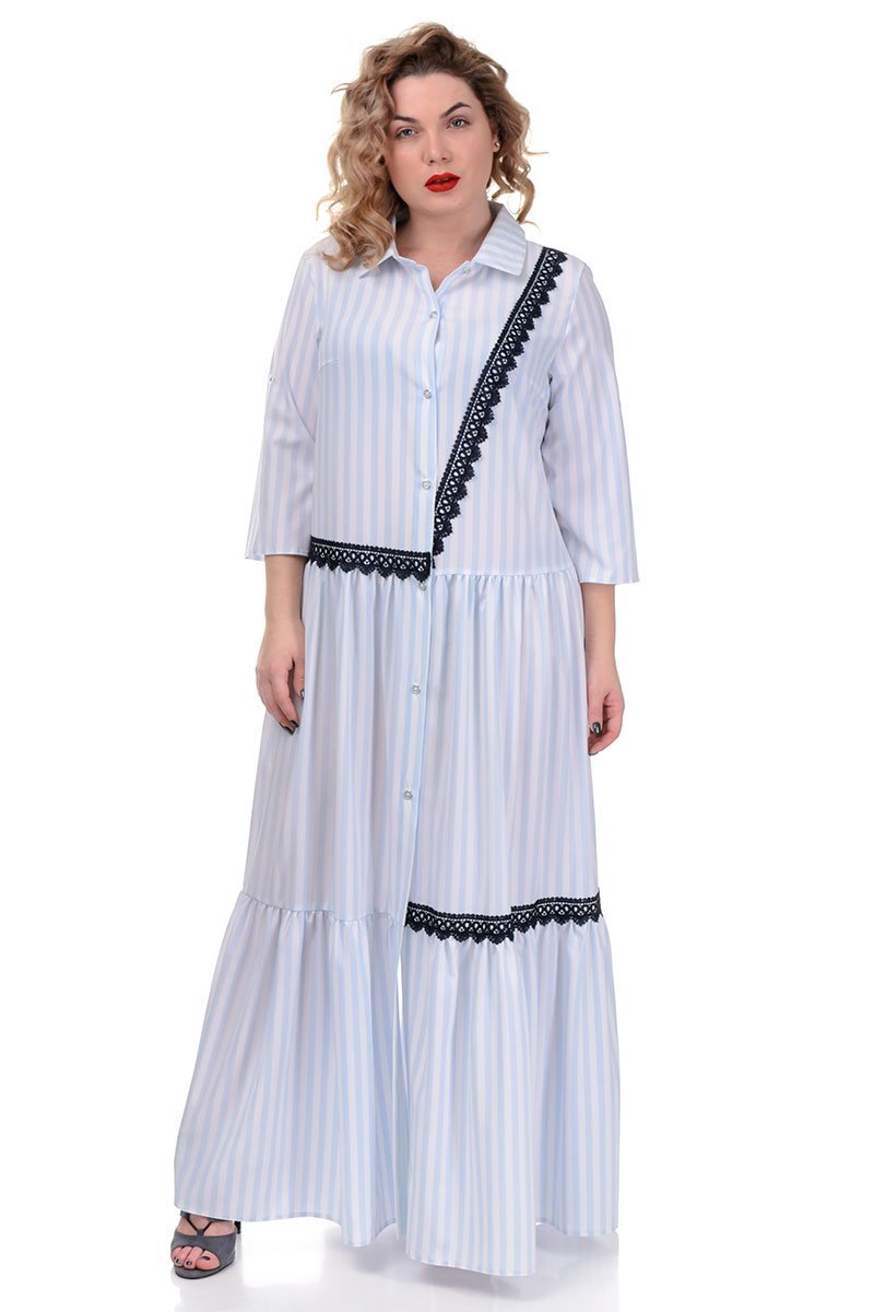 Удлиненное повседневное платье свободного кроя. Изделие имеет рубашечный воротник и застегивается на 7 пуговиц. Рукав можно отвернуть и зафиксировать при помощи пуговицы и внутреннего хлястика. Контрастные полоски кружева визуально «разрезают» силуэт. А благодаря эластичной и приятной на ощупь ткани, платье станет любимой вещью в Вашем гардеробе! Длина рукава 37 см, длина изделия 141 см.Термін збору замовлення складає від 1 до 7 робочих днів. Докладніше
