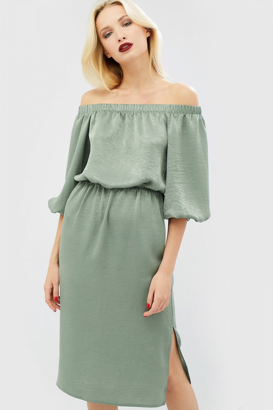 Крой: приталенный; по талии плечам и рукавам резинка; плечи оголены