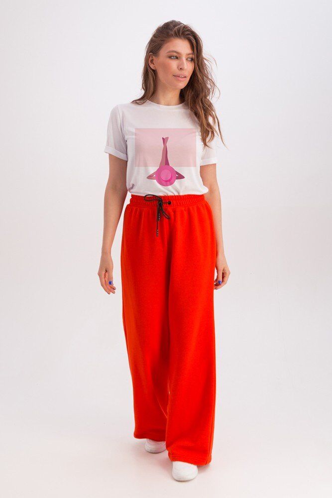 Белая футболка подходит под любой стиль одежды, а яркий дизайнерский рисунок 100% привлечет взгляды окружающих!