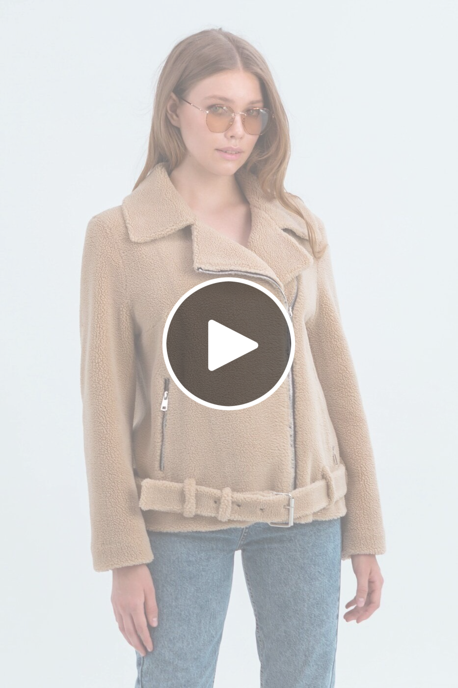 Прямой силуэт. Воротник дубленки отложной, рукава приспущены. Застежка – металлическая косая молния. Карманы на такой же застежке. Дубленка с поясом по низу.