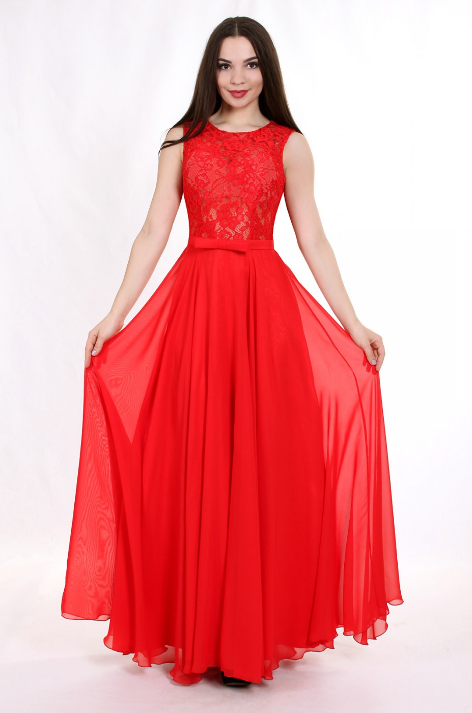Платье вечернее в виде сочетания гипюра с шифоном G2100 от Enigma