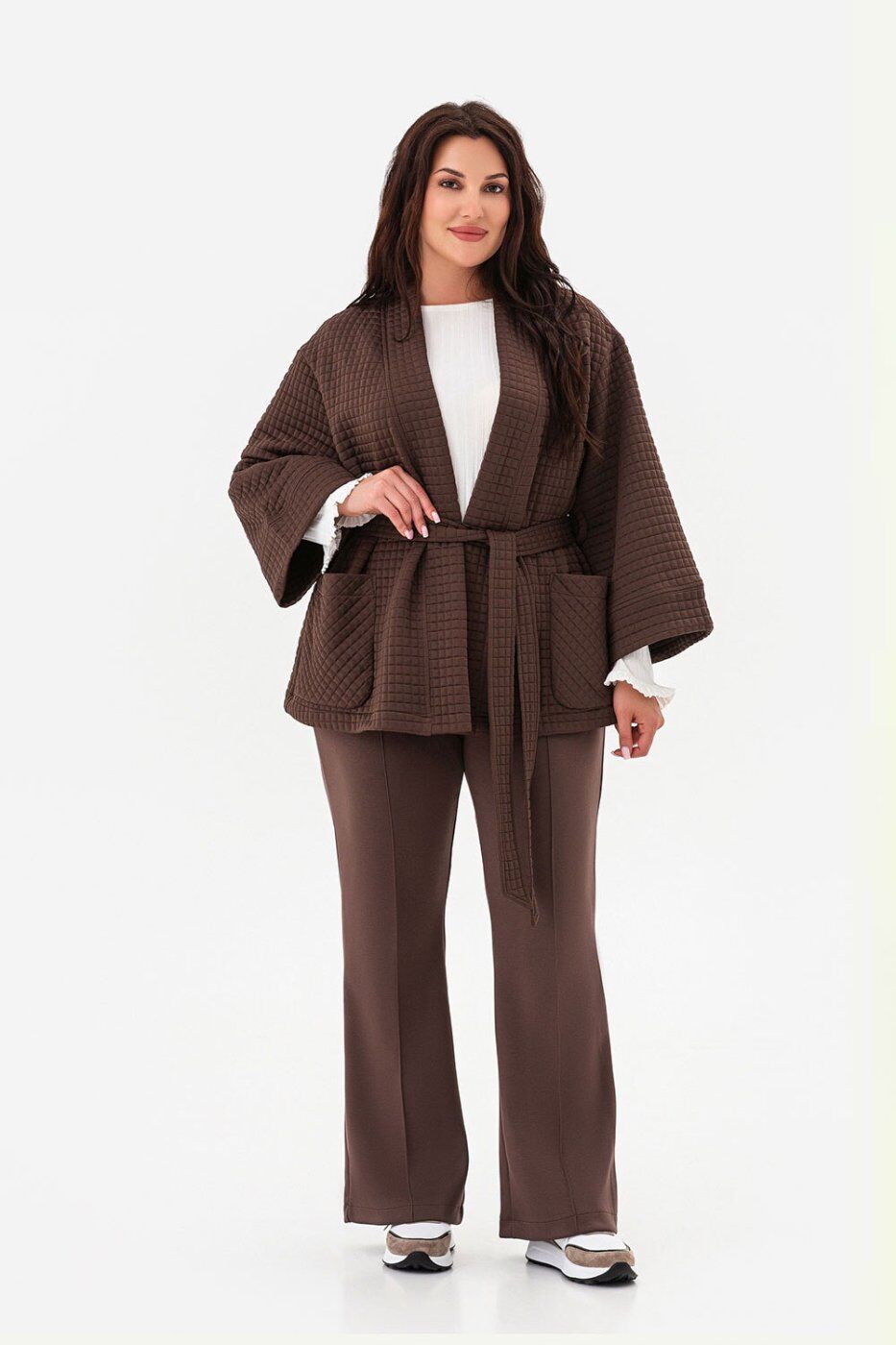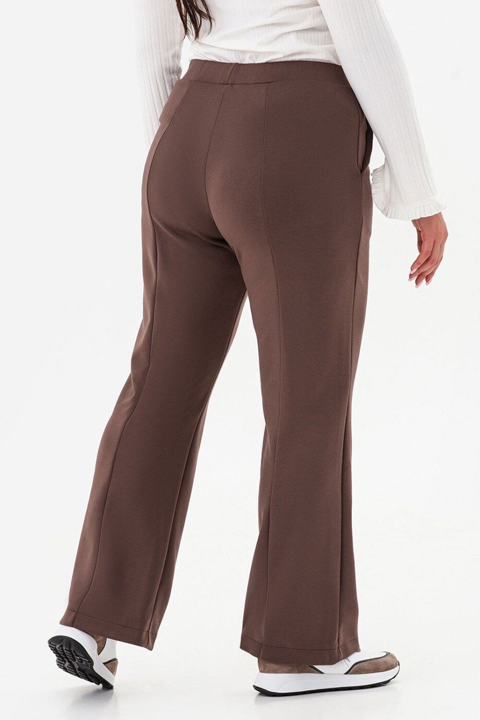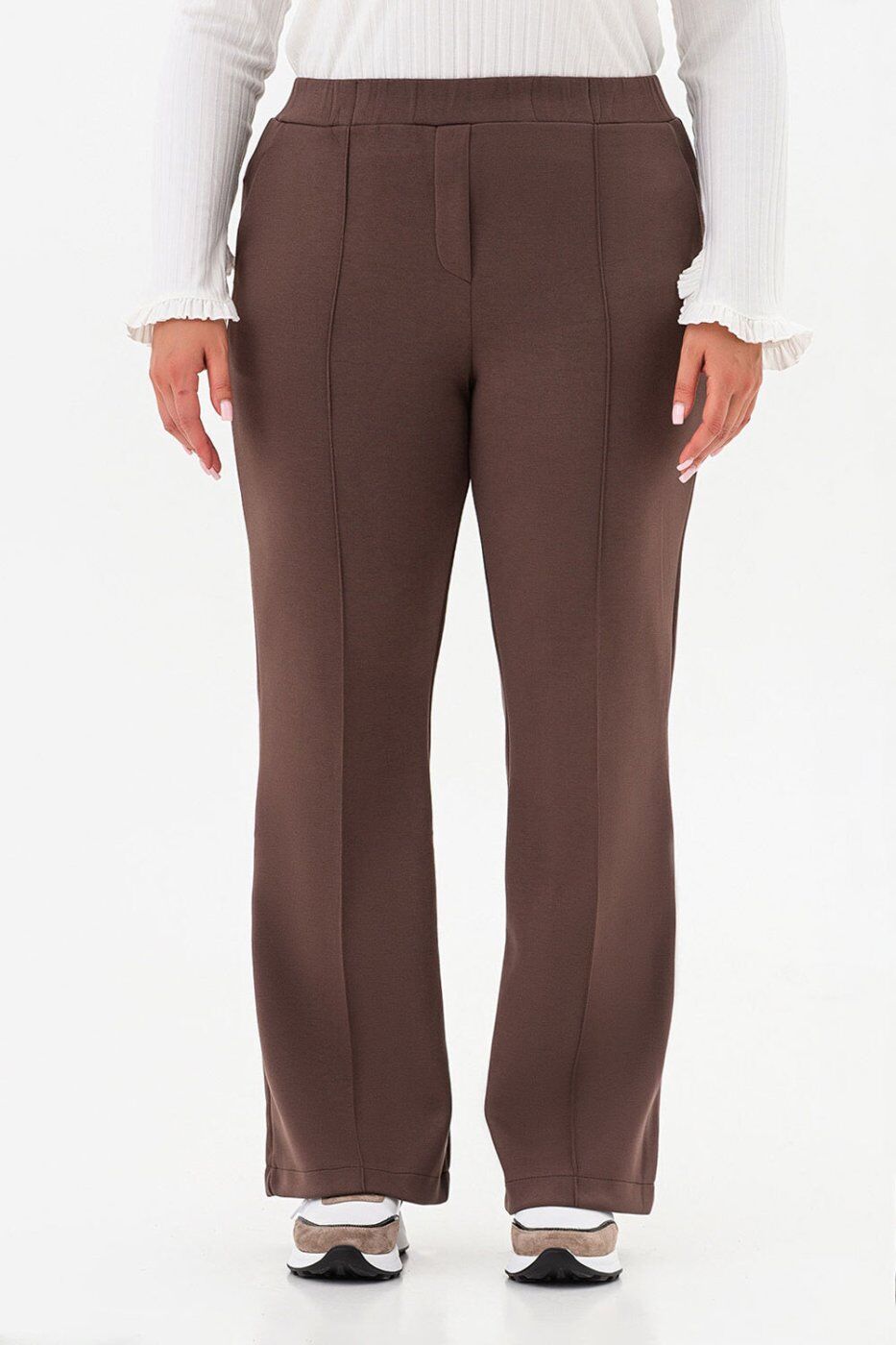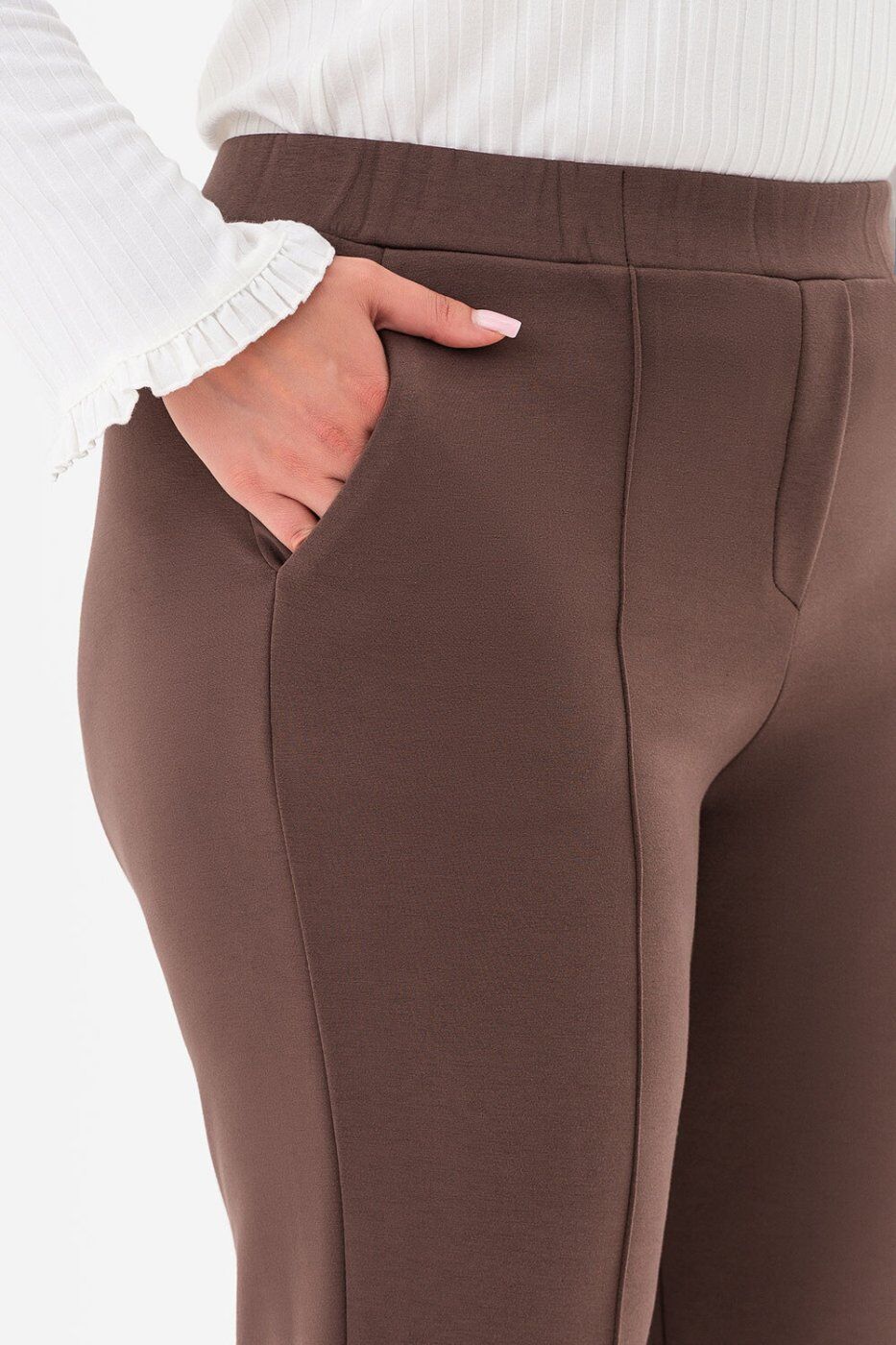 ** Розтяжність: ** висока._x000A_| Розміри | S | M | L | XL | 2XL | 3XL | 4XL | 5XL |_x000A_|:-----------------------------------------|:---:|:---:|:---:|:---:|:---:|:---:|:---:|:---:|_x000A_| Довжина виробу з внутрішнього шва (см) | 78 | 78 | 78 | 78 | 77 | 77 | 77 | 77 |_x000A_| Довжина виробу із зовнішнього шва (см) | 106 | 106 | 106 | 106 | 105 | 105 | 105 | 105 |_x000A_| Ширина лінії талії (см) | 30 | 32 | 34 | 36 | 38 | 40 | 42 | 44 |_x000A_| Ширина лінії стегон (см) | 42 | 45 | 48 | 51 | 54 | 57 | 60 | 63 |_x000A_** Пояс: ** еластичний._x000A_* Осіння суперновинка, яка стане базою вашого гардероба._x000A_* Завдяки класичному крою ці штани легко вписуються навіть у діловий дрес-код._x000A_* Стрілки візуально видовжують ноги, а універсальна палітра базових відтінків робить модель доречною в офісі, на прогулянці чи вечірньому виході._x000A_* Штани відрізняються високою еластичністю, приємні до тіла та не мнуться, що робить їх ідеальними для ділових поїздок, подорожей і відряджень._x000A_* До цієї моделі ми створили класичні кардигани в стилі кімоно з фактурною 3D-тканини._x000A_* Разом вони складають вишуканий костюм — тканини підібрані тон у тон.Термін збору замовлення складає від 1 до 7 робочих днів. Докладніше