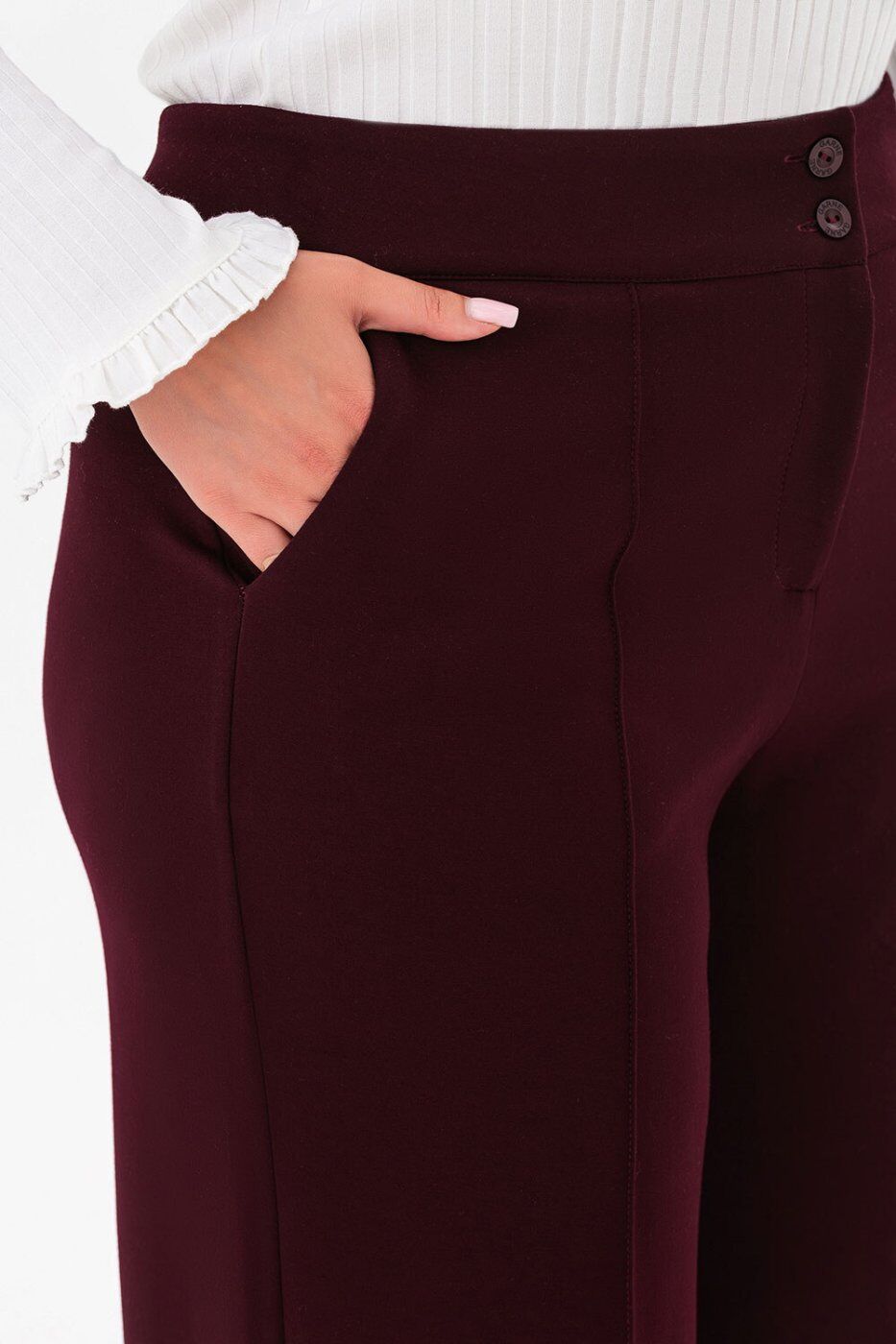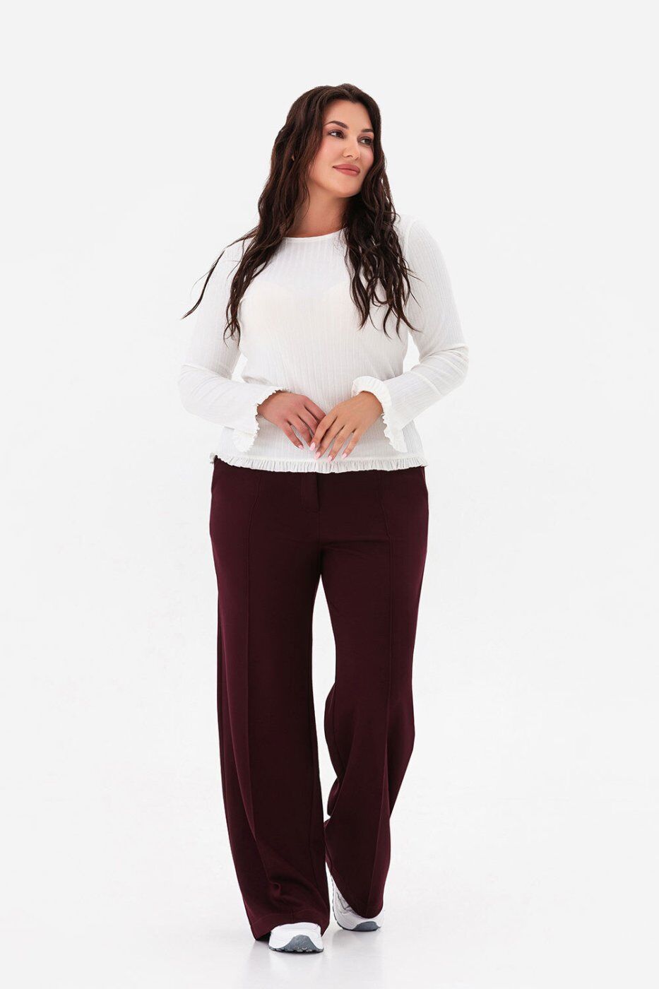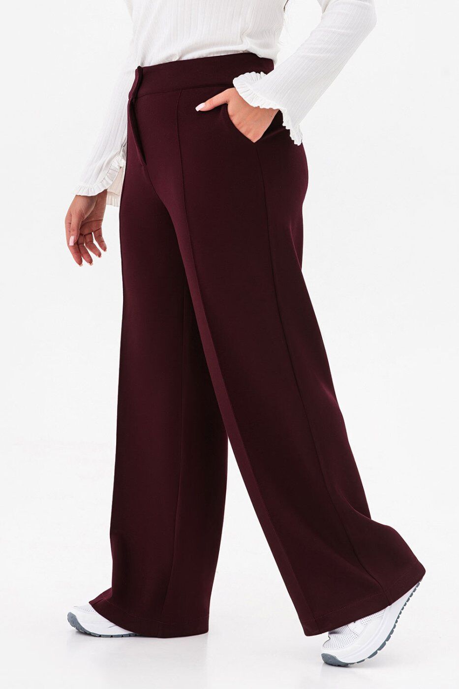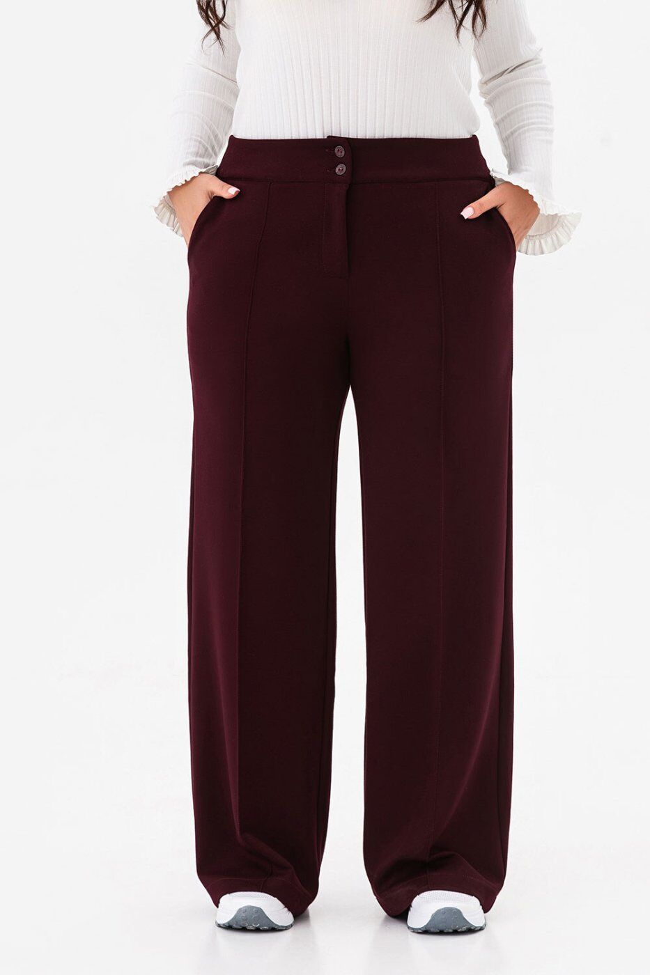 * Універсальний must-have для сучасної жінки._x000A_* Завдяки широкому крою штани ідеально балансують силует, додаючи легкості й витонченості навіть у plus-size розмірі._x000A_* Висока посадка підкреслює талію, класичні стрілки візуально видовжують ноги._x000A_* Глибокий бордо та стриманий темно-синій відтінки роблять модель доречною і для офісу, і для вечірнього виходу._x000A_* Штани легко поєднувати з блузами, светрами чи базовим топом — кожного разу створюючи нову історію стилю._x000A_* Особлива перевага моделі — відмінна еластичність, приємна на дотик тканина та стійкість до зминання._x000A_* Це робить їх ідеальним вибором у динамічному ритмі сучасного життя.Термін збору замовлення складає від 1 до 7 робочих днів. Докладніше