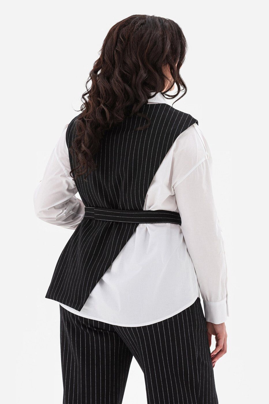 ** ЖИЛЕТ: **_x000A_** Матеріал: ** Алекс полоска_x000A_** Розтяжність: ** не має._x000A_| Розміри | L | XL | 2XL | 3XL | 4XL | 5XL |_x000A_|:-----------------------------------------|:---:|:---:|:---:|:---:|:---:|:---:|_x000A_| Довжина виробу по центру спини (см) | 65 | 65 | 65 | 65 | 65 | 65 |_x000A_* Жилет прямого силуету з поясом у комплекті._x000A_* Модель без рукавів, з круглою горловиною та акуратною посадкою по фігурі._x000A_* Пояс дозволяє підкреслити талію або створити більш вільний образ._x000A_* Ідеально поєднується з сорочками, гольфами чи водолазками — стильне рішення як для офісу, так і для повсякденного гардеробу._x000A_** ШТАНИ: **_x000A_| Розміри| S | M | L | XL | 2XL | 3XL | 4XL | 5XL |_x000A_|:-----------------------------------------|:---:|:---: |:---:|:---:|:---:|:---:|:---:|:---:|_x000A_| Довжина виробу з внутрішнього шва (см) | 79 | 79 | 79 | 79 | 79 | 79 | 79 | 79 |_x000A_| Довжина виробу із зовнішнього шва (см) | 107 | 107 | 107 | 107 | 107 | 108 | 109 | 110 |_x000A_| Ширина лінії талії (см) | 34 | 36 | 38 | 40 | 43 | 46 | 49 | 52 |_x000A_| Ширина лінії стегон (см) | 48 | 50 | 52 | 56 | 59 | 62 | 65 | 69 |_x000A_* Штани в класичну смужку з акцентом на комфорт._x000A_* Модель поєднує строгість класики та відчуття затишку._x000A_* Тепла тканина з невеликим вмістом еластану забезпечує комфорт у носінні та гарну посадку по фігурі, зберігаючи при цьому елегантність._x000A_* Штани однаково вдало вписуються як у ділові образи з блузами чи жакетами, так і в повсякденні поєднання зі светрами чи кардиганами._x000A_* Завдяки універсальному дизайну вони стануть надійною основою осінньо-зимового гардероба._x000A_* Це практична річ, яка дарує відчуття впевненості та стилю щодня.
