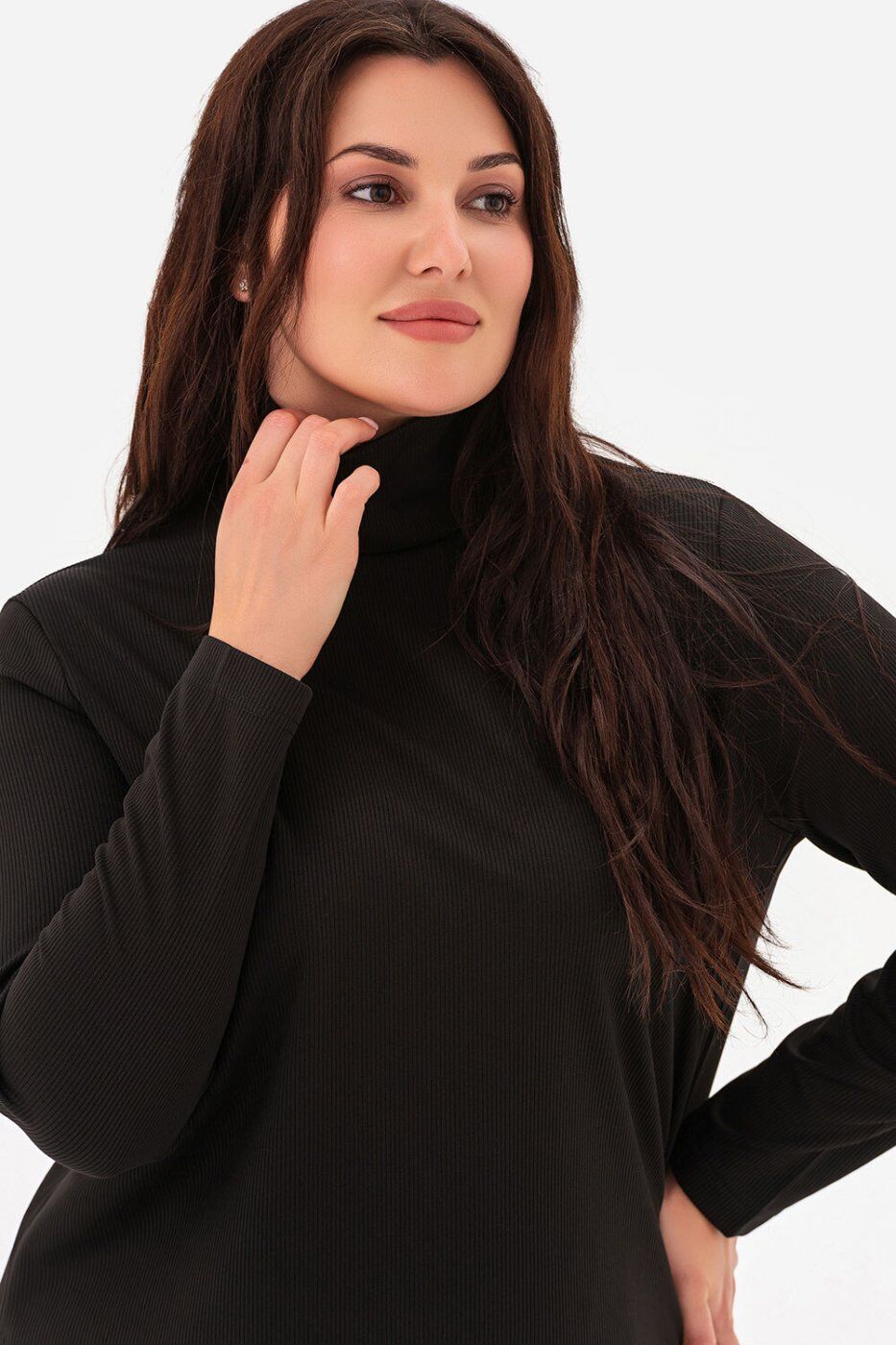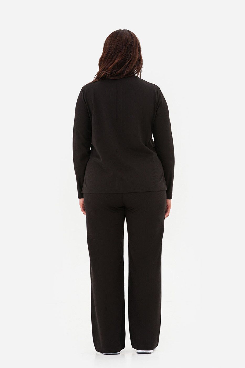 ** Матеріал: ** мустанг фліс._x000A_** Розтяжність: ** немає._x000A_| Розміри | L/XL | 2XL/3XL | 4XL/5XL |_x000A_|:-----------------------------------------|:---:|:---: |:---:|_x000A_| КОФТА. Довжина рукава від плеча (см)| 61 | 61 | 61 |_x000A_| КОФТА. Довжина виробу по центру спини (см) | 70 | 71 | 72 |_x000A_| КОФТА. Ширина лінії грудей (см) | 58 | 62 | 66 |_x000A_| ШТАНИ. Довжина виробу із внутрішнього шва (см) | 78 | 77 | 76 |_x000A_| ШТАНИ. Довжина виробу із зовнішнього шва (см) | 108 | 108 | 109 |_x000A_| ШТАНИ. Ширина лінії талії (см) | 38 | 43 | 48 |_x000A_| ШТАНИ. Ширина лінії стегон (см) | 52 | 58 | 64 |_x000A_** Пояс: ** резинка._x000A_* Цей костюм в рубчик на флісі — ідеальне рішення для прохолодної пори року._x000A_* Матеріал з флісовою підкладкою забезпечує відмінне тепло і комфорт, дозволяючи зберігати затишок навіть у холодну погоду._x000A_* Рубчаста текстура додає костюму стильності та виразності, роблячи його універсальним варіантом для повсякденного образу._x000A_* Комплект складається зі светра з високим коміром і просторих штанів на резинці, що забезпечує максимальну зручність._x000A_* Светр вільного крою з високим коміром надійно захищає шию від прохолоди, а штани з високою посадкою і вільними штанинами, створюють відчуття легкості та свободи рухів._x000A_* Такий костюм стане улюбленим у гардеробі для тих, хто цінує комфорт і тепло, не забуваючи при цьому про стиль. _x000A_* Його можна носити як вдома, так і для прогулянок на свіжому повітрі, створюючи затишний і модний образ.