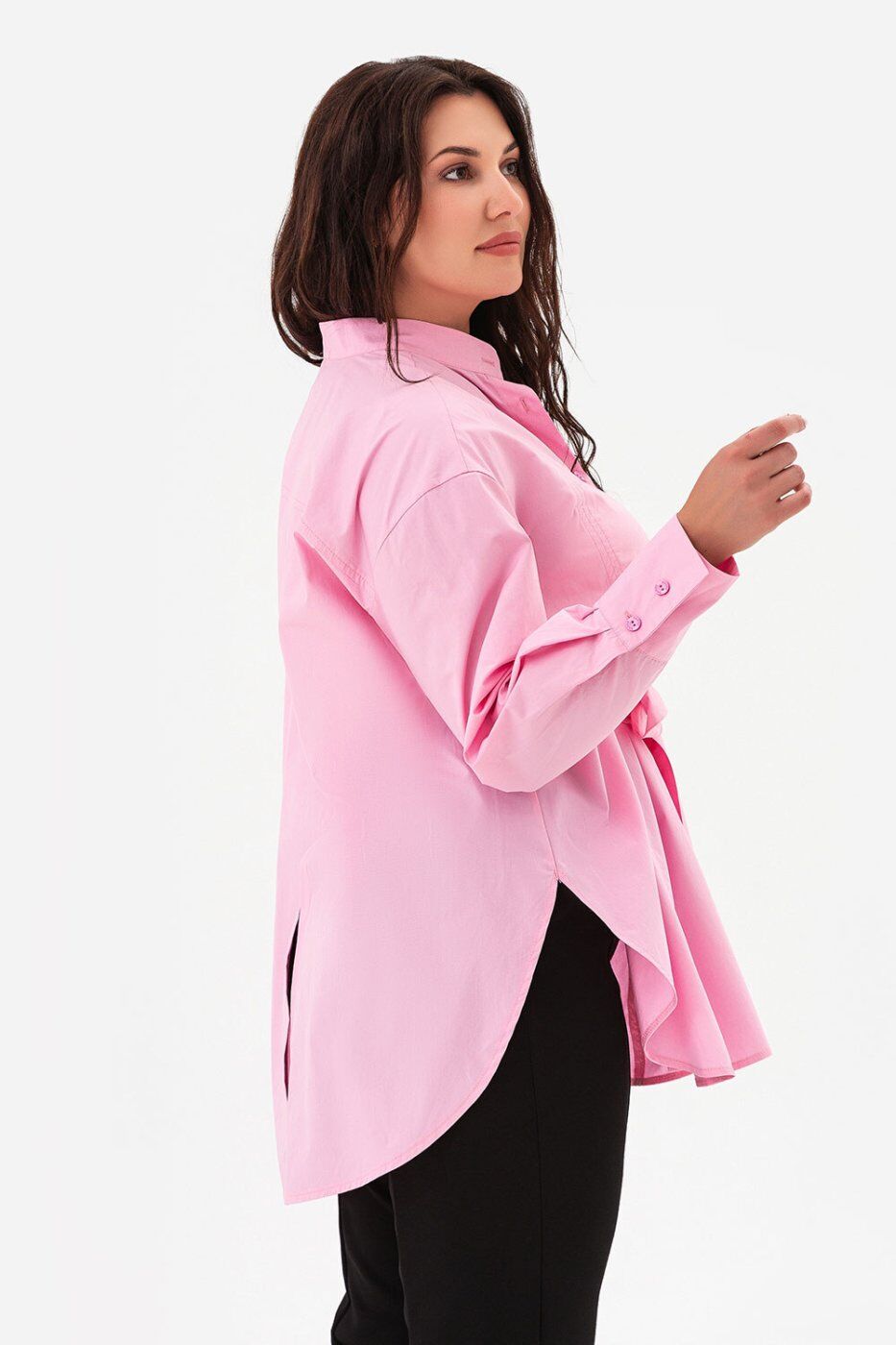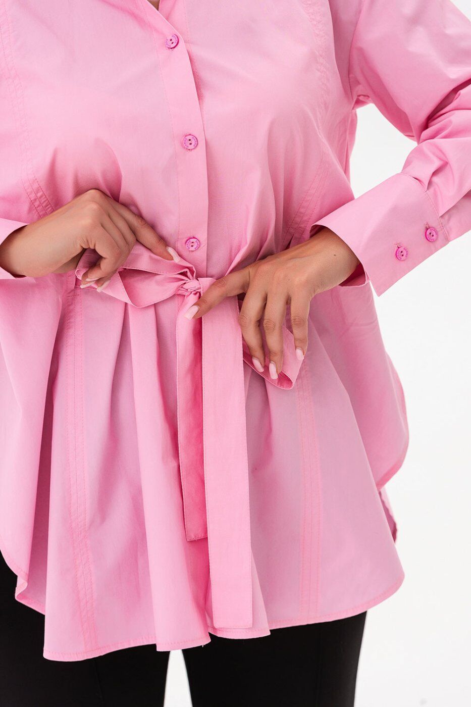 ** Матеріал: ** сорочкова тканина._x000A_** Розтяжність: ** немає._x000A_| Розміри | L/XL | 2XL/3XL | 4XL/5XL |_x000A_|:-----------------------------------------|:---:|:---:|:---:|_x000A_| Довжина рукава від горловини (см) | 74 | 75 | 76 |_x000A_| Довжина виробу по центру спини (см) | 81 | 81 | 81 |_x000A_| Ширина по лінії грудей (см) | 58 | 64 | 70 |_x000A_* Новинка сезону — стильна сорочка з акцентом на талії._x000A_* Модель має вільний силует зі спинки й приталений акцент спереду, що дозволяє вигідно підкреслити фігуру._x000A_* Завдяки конструкції сорочка допомагає візуально зменшити об’єм стегон або, навпаки, додати його, створюючи гармонійні пропорції._x000A_* Широкі манжети можна стилізувати в декількох варіантах — носити класично застібнутими чи відвернутими, створюючи ефект акцентних деталей._x000A_* Така багатофункціональність робить модель доречною як у ділових, так і в кежуальних образах._x000A_* Сорочка стане універсальною базою, яку легко поєднати зі штанами, спідницями чи джинсами, створюючи образи для офісу, прогулянок чи особливих подій._x000A_** Примітка: модель не рекомендуємо тим, для кого проблемною зоною є талія. **_x000A_** Характеристики: **_x000A_* Вільний крій для комфорту._x000A_* Комір-стійка._x000A_* Рукави довгі, з можливістю підкочування._x000A_* Пояс у комплекті.Термін збору замовлення складає від 1 до 7 робочих днів. Докладніше