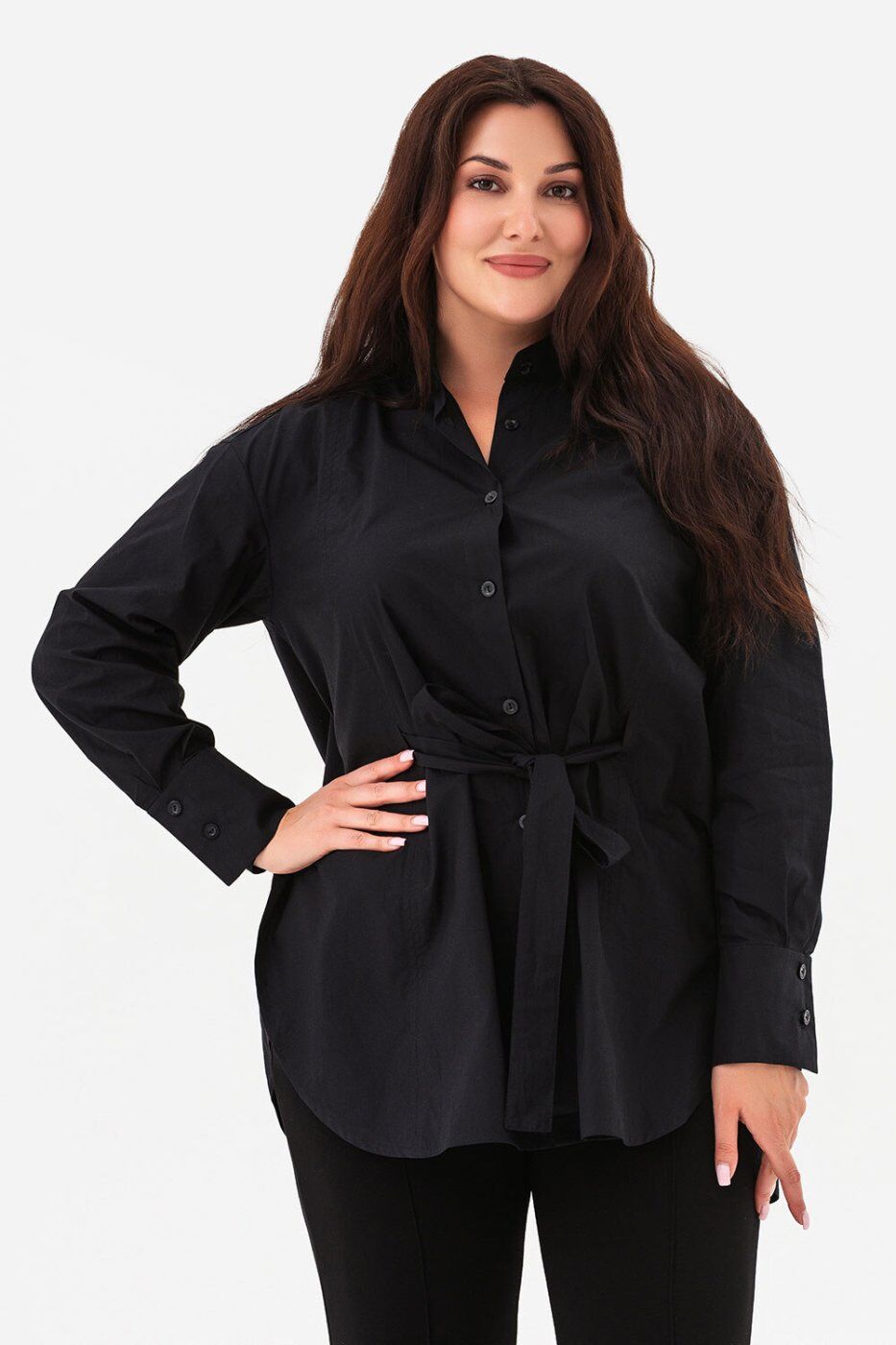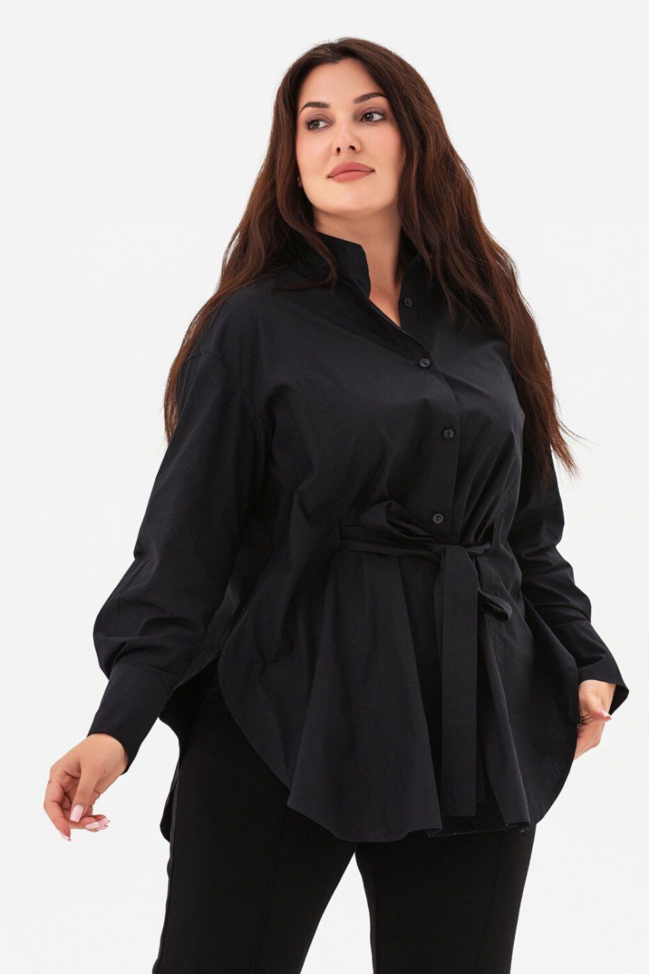 ** Матеріал: ** сорочкова тканина._x000A_** Розтяжність: ** немає._x000A_| Розміри | L/XL | 2XL/3XL | 4XL/5XL |_x000A_|:-----------------------------------------|:---:|:---:|:---:|_x000A_| Довжина рукава від горловини (см) | 74 | 75 | 76 |_x000A_| Довжина виробу по центру спини (см) | 81 | 81 | 81 |_x000A_| Ширина по лінії грудей (см) | 58 | 64 | 70 |_x000A_* Новинка сезону — стильна сорочка з акцентом на талії._x000A_* Модель має вільний силует зі спинки й приталений акцент спереду, що дозволяє вигідно підкреслити фігуру._x000A_* Завдяки конструкції сорочка допомагає візуально зменшити об’єм стегон або, навпаки, додати його, створюючи гармонійні пропорції._x000A_* Широкі манжети можна стилізувати в декількох варіантах — носити класично застібнутими чи відвернутими, створюючи ефект акцентних деталей._x000A_* Така багатофункціональність робить модель доречною як у ділових, так і в кежуальних образах._x000A_* Сорочка стане універсальною базою, яку легко поєднати зі штанами, спідницями чи джинсами, створюючи образи для офісу, прогулянок чи особливих подій._x000A_** Примітка: модель не рекомендуємо тим, для кого проблемною зоною є талія. **_x000A_** Характеристики: **_x000A_* Вільний крій для комфорту._x000A_* Комір-стійка._x000A_* Рукави довгі, з можливістю підкочування._x000A_* Пояс у комплекті.Термін збору замовлення складає від 1 до 7 робочих днів. Докладніше