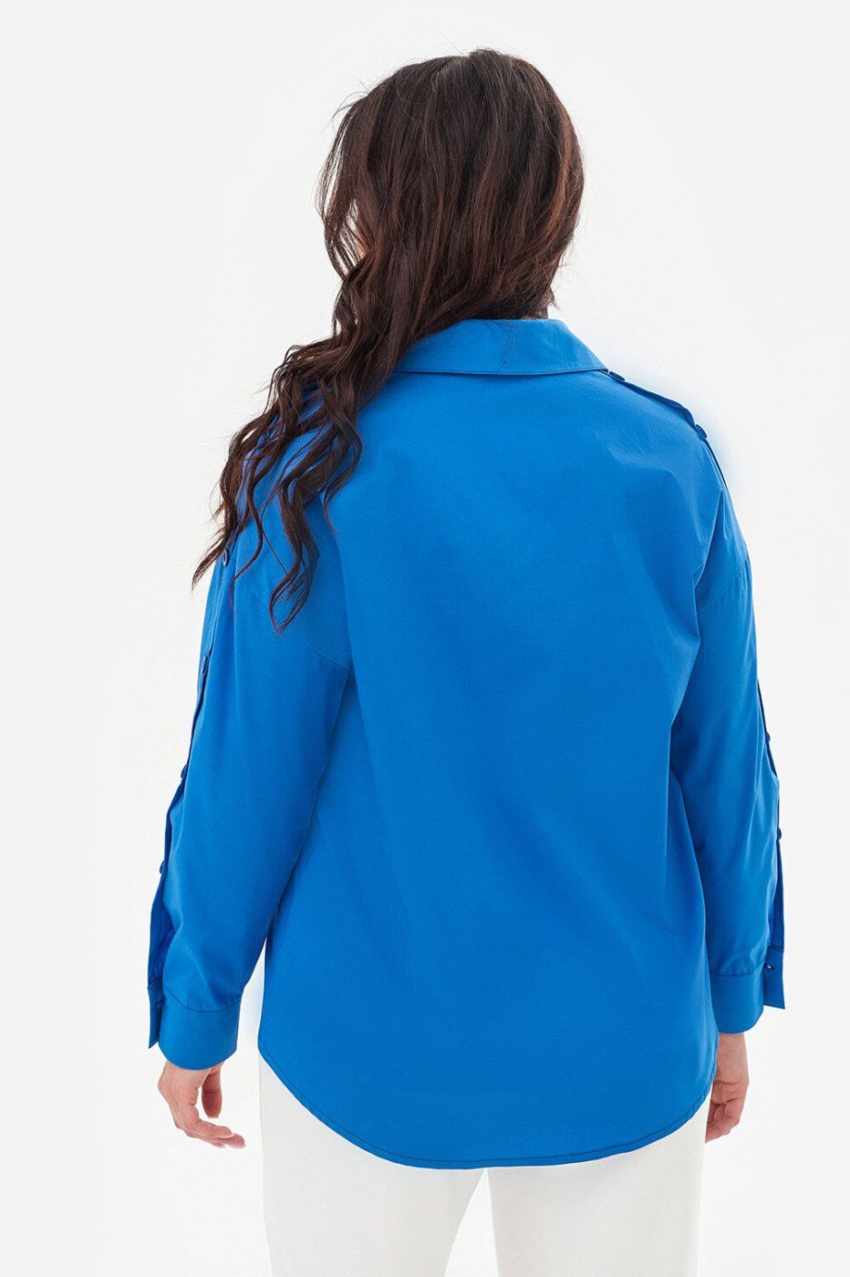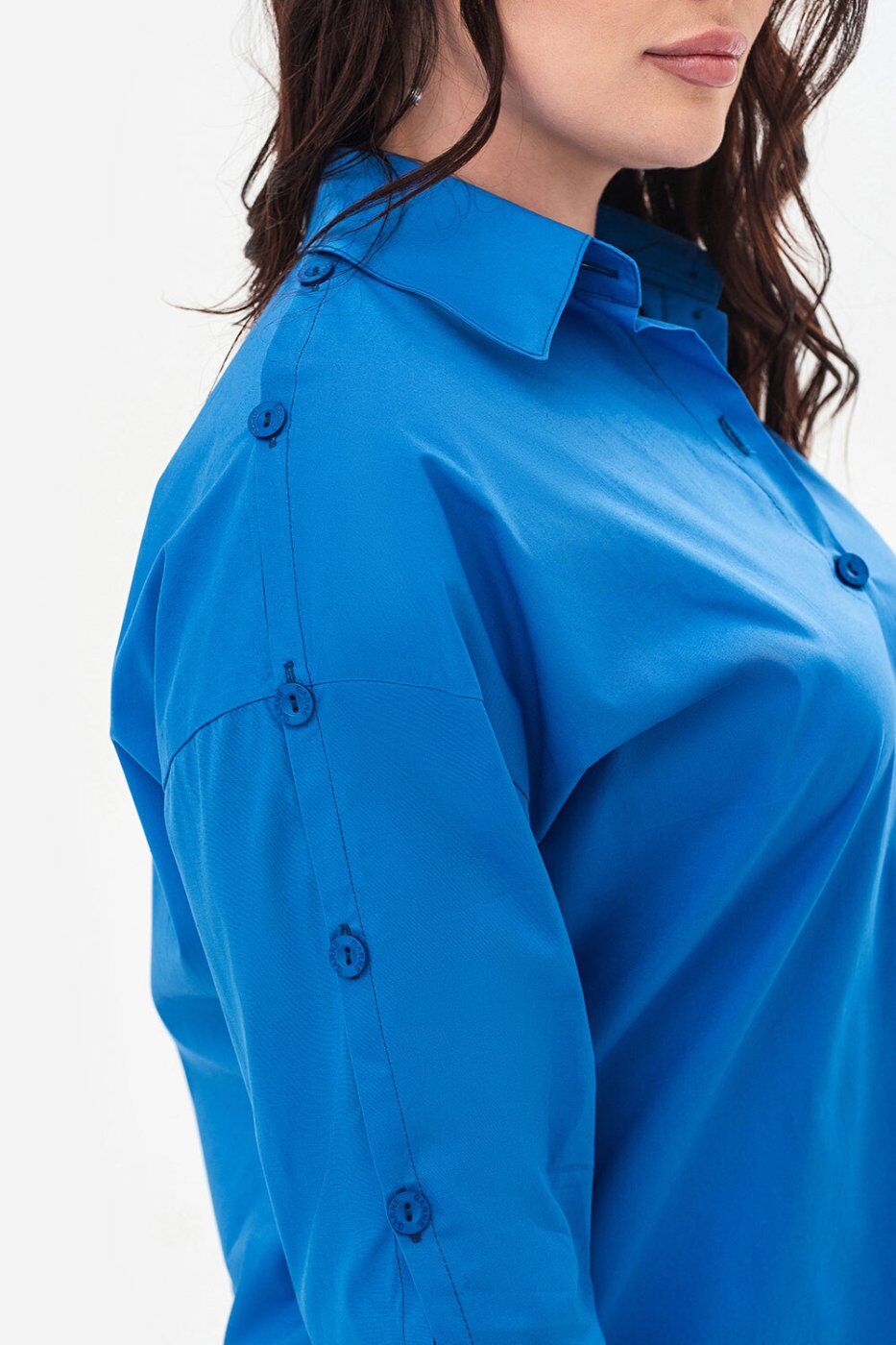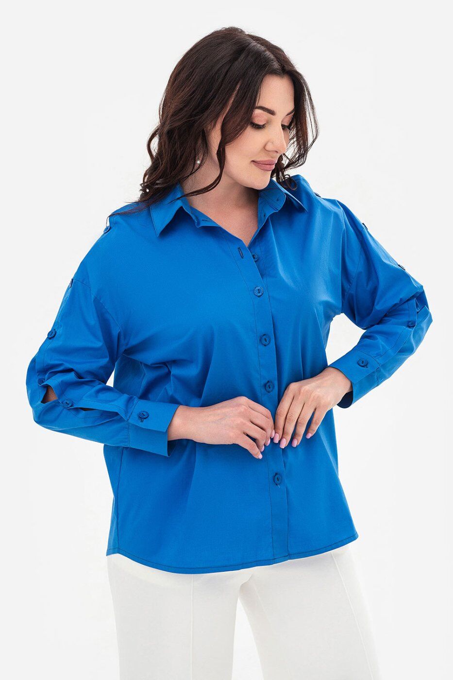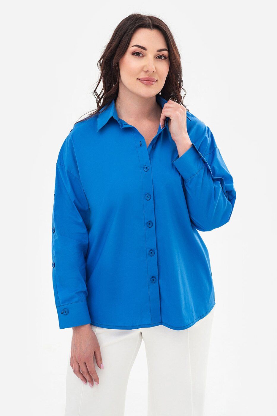 ** Матеріал: ** рубашка._x000A_** Розтяжність: ** не має._x000A_| Розміри | L | XL | 2XL | 3XL | 4XL | 5XL |_x000A_|:-----------------------------------------|:---:|:---:|:---:|:---:|:---:|:---:|_x000A_| Довжина рукава від горловини (см) | 72 | 73 | 73 | 73 | 75 | 75 |_x000A_| Довжина виробу по центру спини (см) | 72 | 73 | 73 | 73 | 73 | 73 |_x000A_| Ширина по лінії грудей (см) | 62 | 64 | 66 | 68 | 70 | 72 |_x000A_* Сорочка з декоративними ґудзиками на рукавах та плечах._x000A_* Ця сорочка — модний акцент вашого гардеробу._x000A_* Вона поєднує елегантність, комфорт і трендовий декор, що одразу привертає увагу._x000A_* Дизайн із рядом ґудзиків уздовж плечового шва та рукава додає індивідуальності — без потреби в додаткових аксесуарах._x000A_* Модель має вільний крій із прямими лініями, що дозволяє легко адаптувати сорочку під будь-яку фігуру та комбінувати її з базовими речами._x000A_* Класичний комір і манжети врівноважують експресивність деталей, додаючи стриманості й витонченості._x000A_** Чому вона must-have: **_x000A_— Акцент на декоративну деталь._x000A_— Легка в стилізації: носіть заправленою або навипуск._x000A_— Підходить до офісних, кежуал і романтичних образів._x000A_— Ідеально виглядає в total look, у поєднанні з денімом чи класикою._x000A_** Склад тканини: ** бавовна, приємна до тіла, тримає форму, дихає — комфорт гарантовано впродовж усього дня._x000A_* Ця сорочка — символ сучасної жіночності: сміливої, витонченої та незалежної.