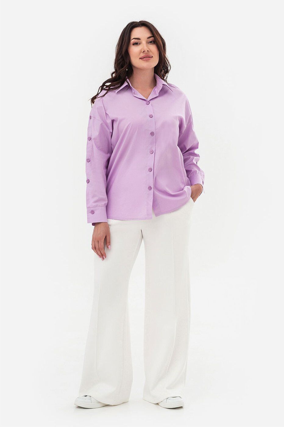 ** Матеріал: ** рубашка._x000A_** Розтяжність: ** не має._x000A_| Розміри | L | XL | 2XL | 3XL | 4XL | 5XL |_x000A_|:-----------------------------------------|:---:|:---:|:---:|:---:|:---:|:---:|_x000A_| Довжина рукава від горловини (см) | 72 | 73 | 73 | 73 | 75 | 75 |_x000A_| Довжина виробу по центру спини (см) | 72 | 73 | 73 | 73 | 73 | 73 |_x000A_| Ширина по лінії грудей (см) | 62 | 64 | 66 | 68 | 70 | 72 |_x000A_* Сорочка з декоративними ґудзиками на рукавах та плечах._x000A_* Ця сорочка — модний акцент вашого гардеробу._x000A_* Вона поєднує елегантність, комфорт і трендовий декор, що одразу привертає увагу._x000A_* Дизайн із рядом ґудзиків уздовж плечового шва та рукава додає індивідуальності — без потреби в додаткових аксесуарах._x000A_* Модель має вільний крій із прямими лініями, що дозволяє легко адаптувати сорочку під будь-яку фігуру та комбінувати її з базовими речами._x000A_* Класичний комір і манжети врівноважують експресивність деталей, додаючи стриманості й витонченості._x000A_** Чому вона must-have: **_x000A_— Акцент на декоративну деталь._x000A_— Легка в стилізації: носіть заправленою або навипуск._x000A_— Підходить до офісних, кежуал і романтичних образів._x000A_— Ідеально виглядає в total look, у поєднанні з денімом чи класикою._x000A_** Склад тканини: ** бавовна, приємна до тіла, тримає форму, дихає — комфорт гарантовано впродовж усього дня._x000A_* Ця сорочка — символ сучасної жіночності: сміливої, витонченої та незалежної.