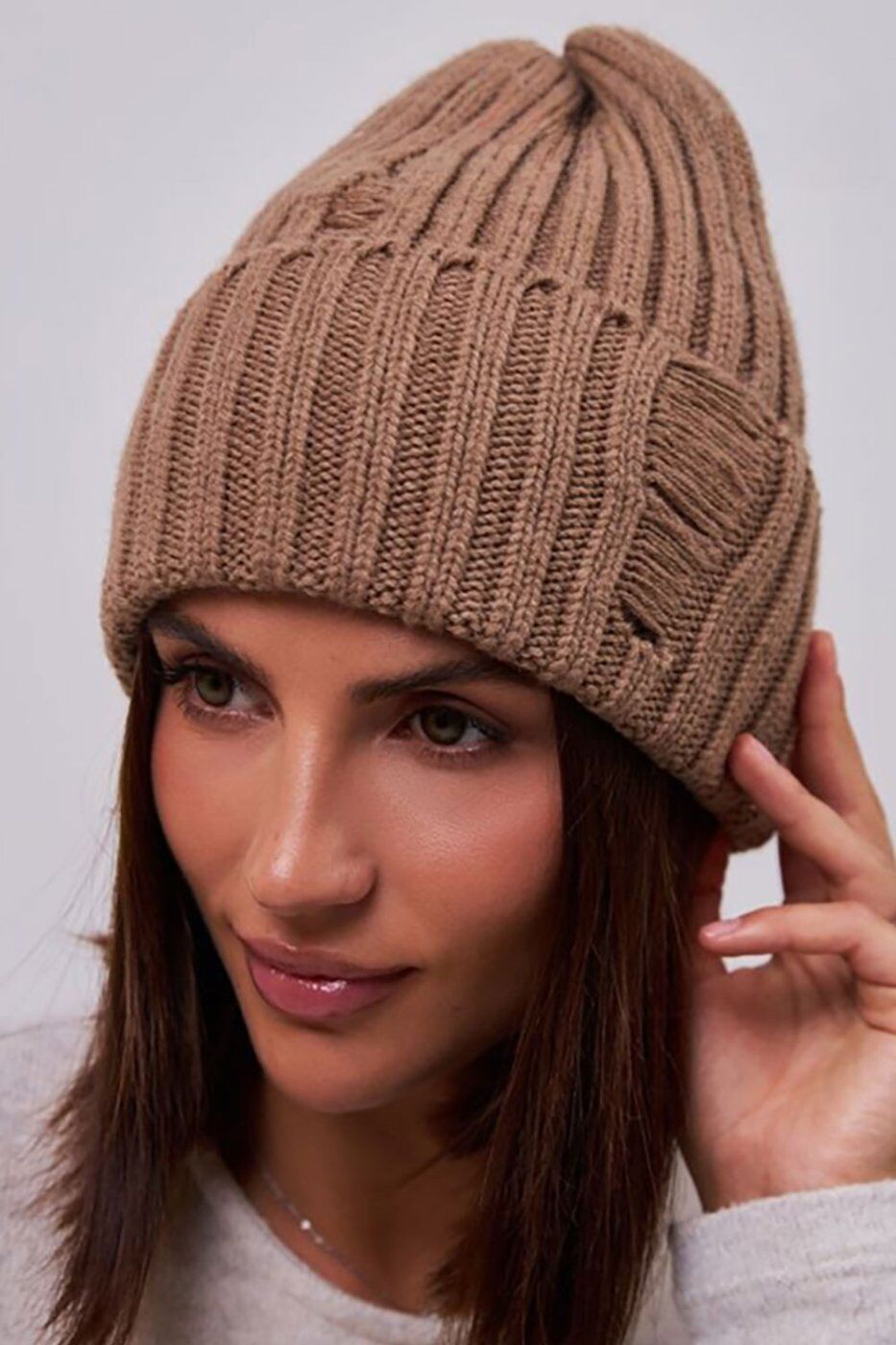 ** Розмір: 56-60 см (універсальний) **_x000A_* Для екстравагантних модниць відмінним вибором стане шапка з фактурою в рубчик, яка приверне увагу за рахунок незвичного дизайну. _x000A_* Виразні дірки - головна концепція головного убору, що дає можливість виділитися з натовпу і висловити свій індивідуальний стиль._x000A_* Досить продуманий, водночас простий і стильний крій з манжетом та зібраною маківкою.Термін збору замовлення складає від 1 до 7 робочих днів. Докладніше