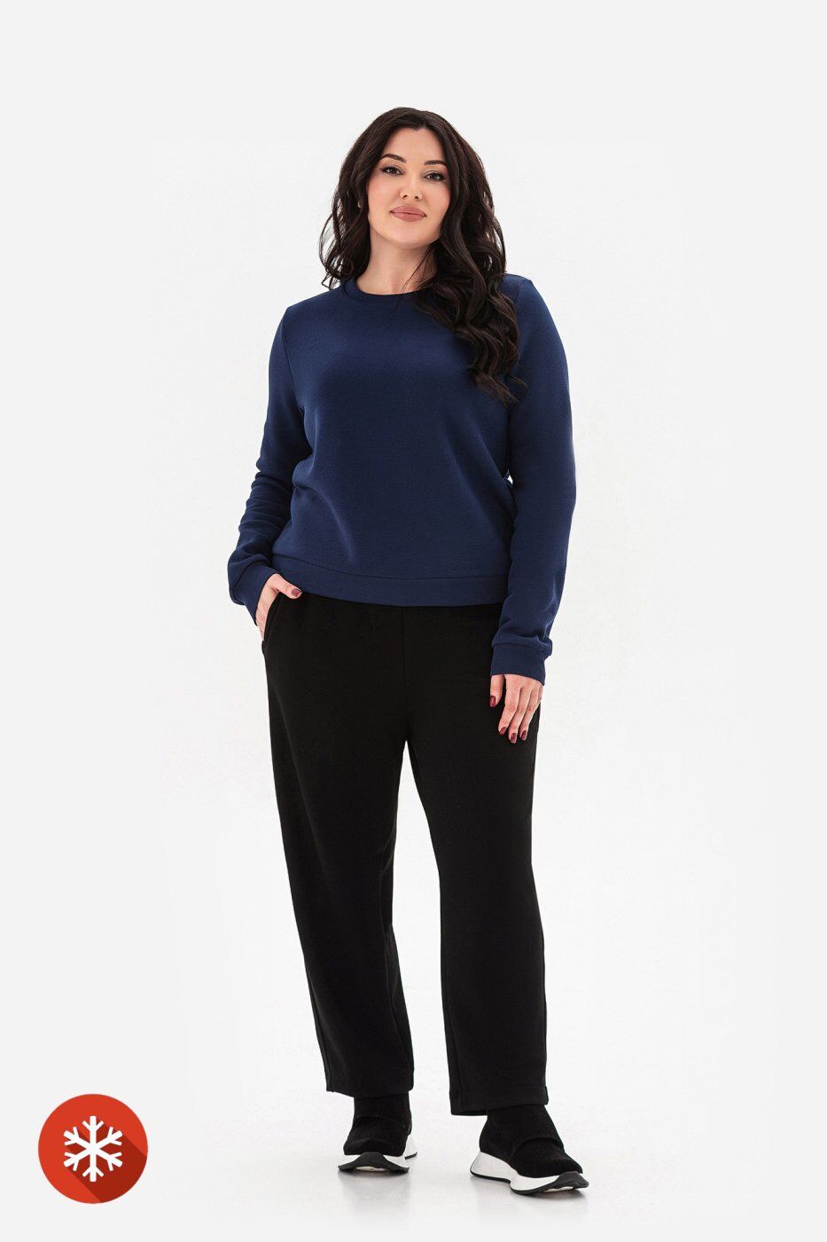 \nСвітшот TODAY темно - синій легко поєднується як із джинсами, так і з брюками, створюючи розслаблений і водночас стильний образ. Надягніть його з вузькими джинсами та кедами для створення повсякденного вигляду або поєднуйте зі штанами та ботильйонами для більш елегантного вигляду. У холодну погоду доповніть образ теплим кардиганом чи пальто.