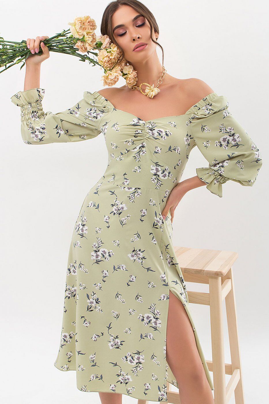 Платье Пала д/р оливка-белый букет p67718 от Glem