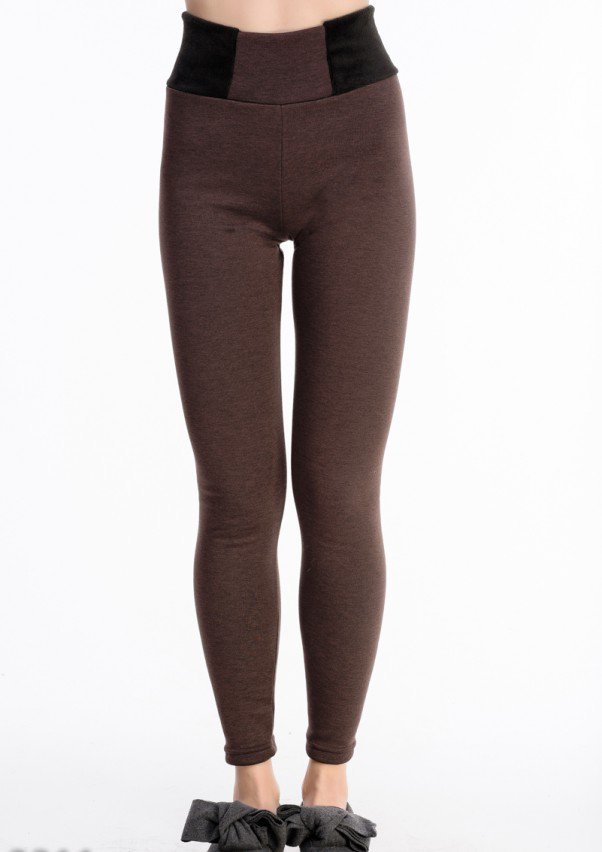 Коричневые демисезонные леггинсы, утепленные добротным искусственным мехом. Модель с высокой талией и широким поясом, также украшенным мехом. Вещь уютная, подходящая и для дома, и для улицы.