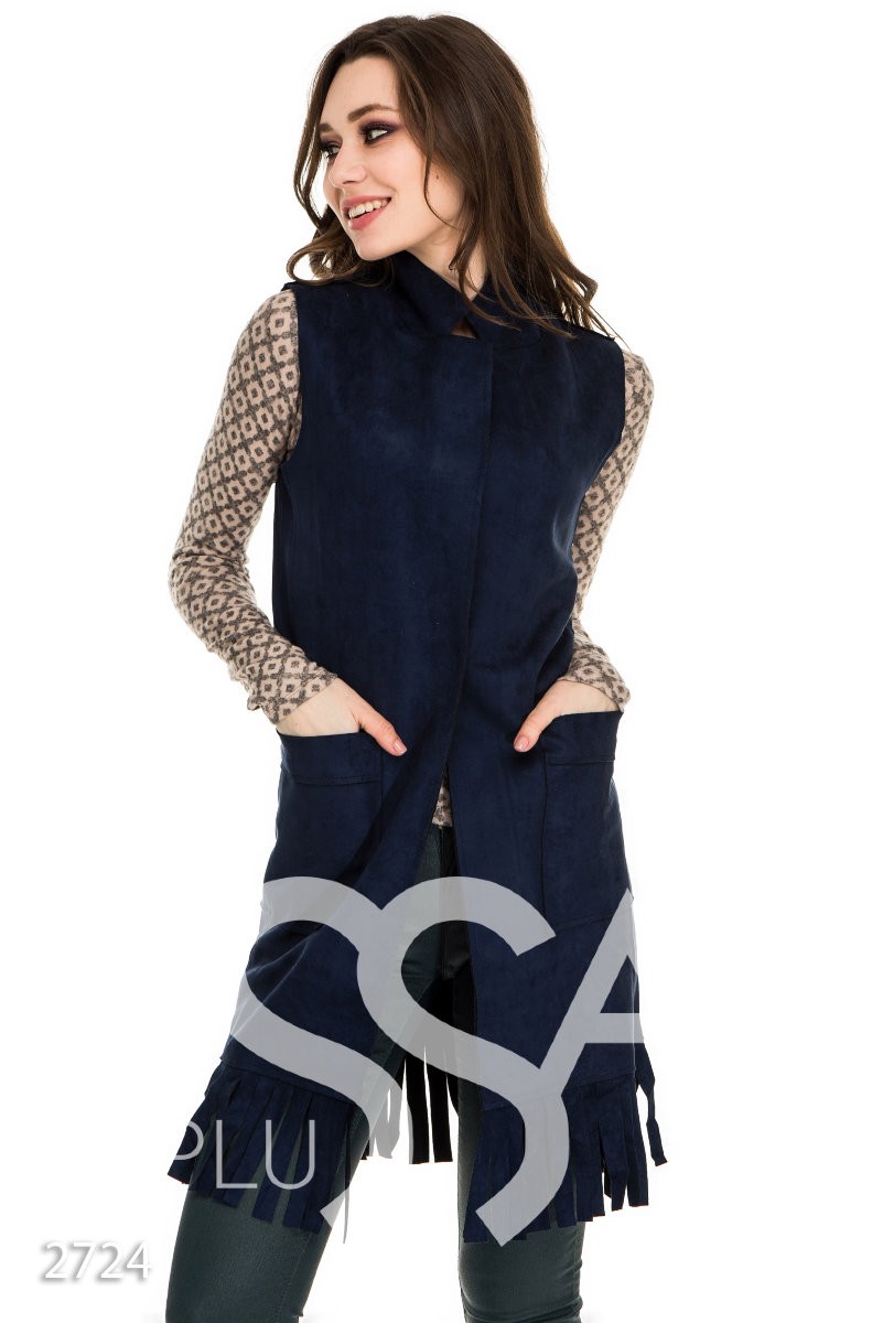Синий замшевый жилет с бахромой и необработанными краями 2724_синий от ISSA PLUS