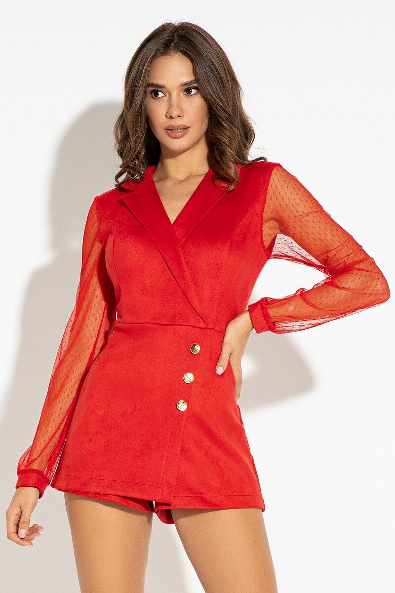 Ошатний замшевий Ромпер червоного кольору з рукавами з сітки Айла 4577 от Itelle
