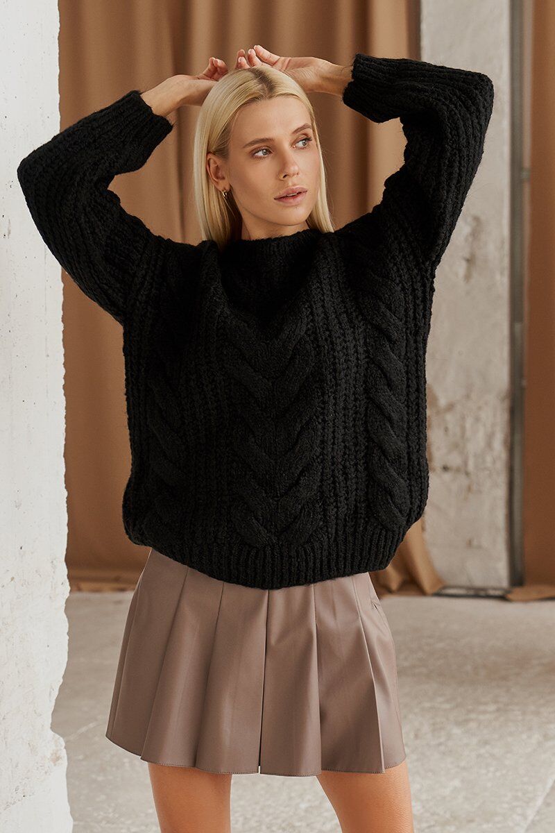 Свитер крупной ажурной вязки чёрного цвета Зухра V52321 от Itelle