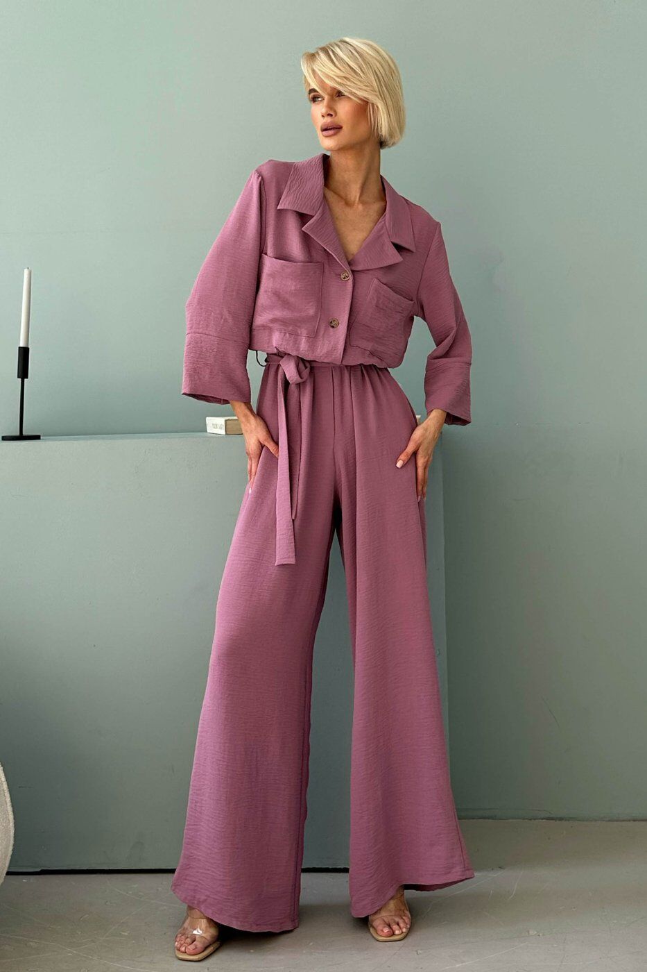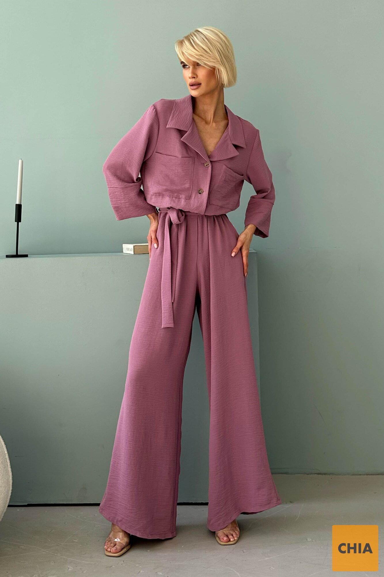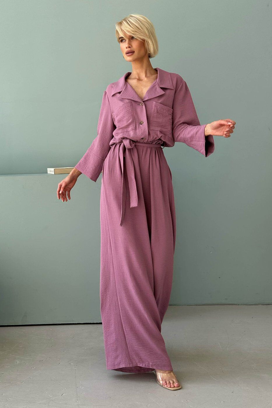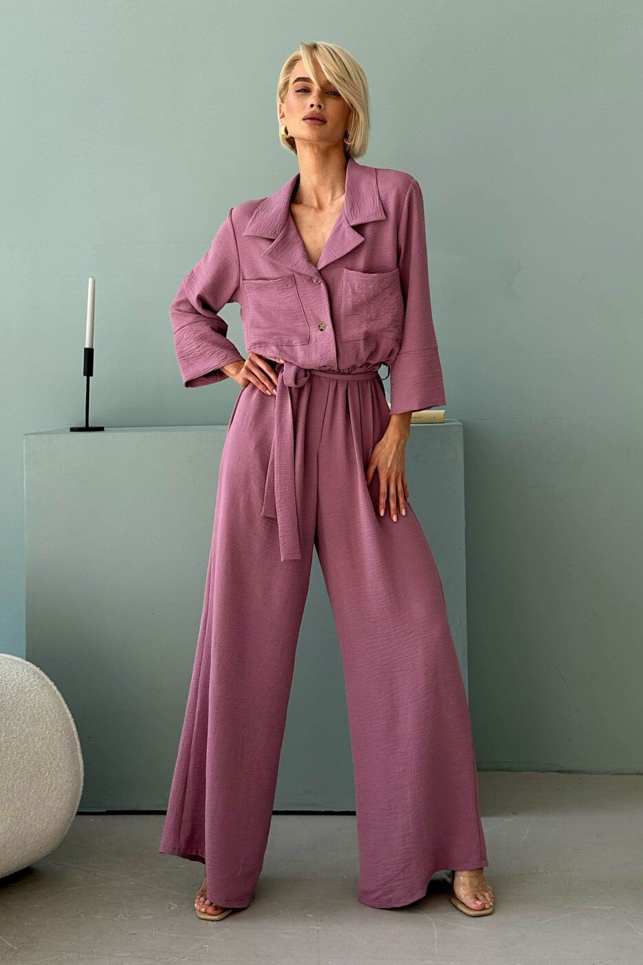 Неймовірно ніжний та легкий комбез подарує комфорт у спекотні літні дні. Вільний силует комбінезону підійде кожній дівчині і буде універсальним для будь-якого типу фігури. Сорочковий комір дозволить підкреслити гарну лінію шиї, кишені в бічних швах додадуть практичності та зручності. У такому вбранні Ви будете романтичною і чарівною.
