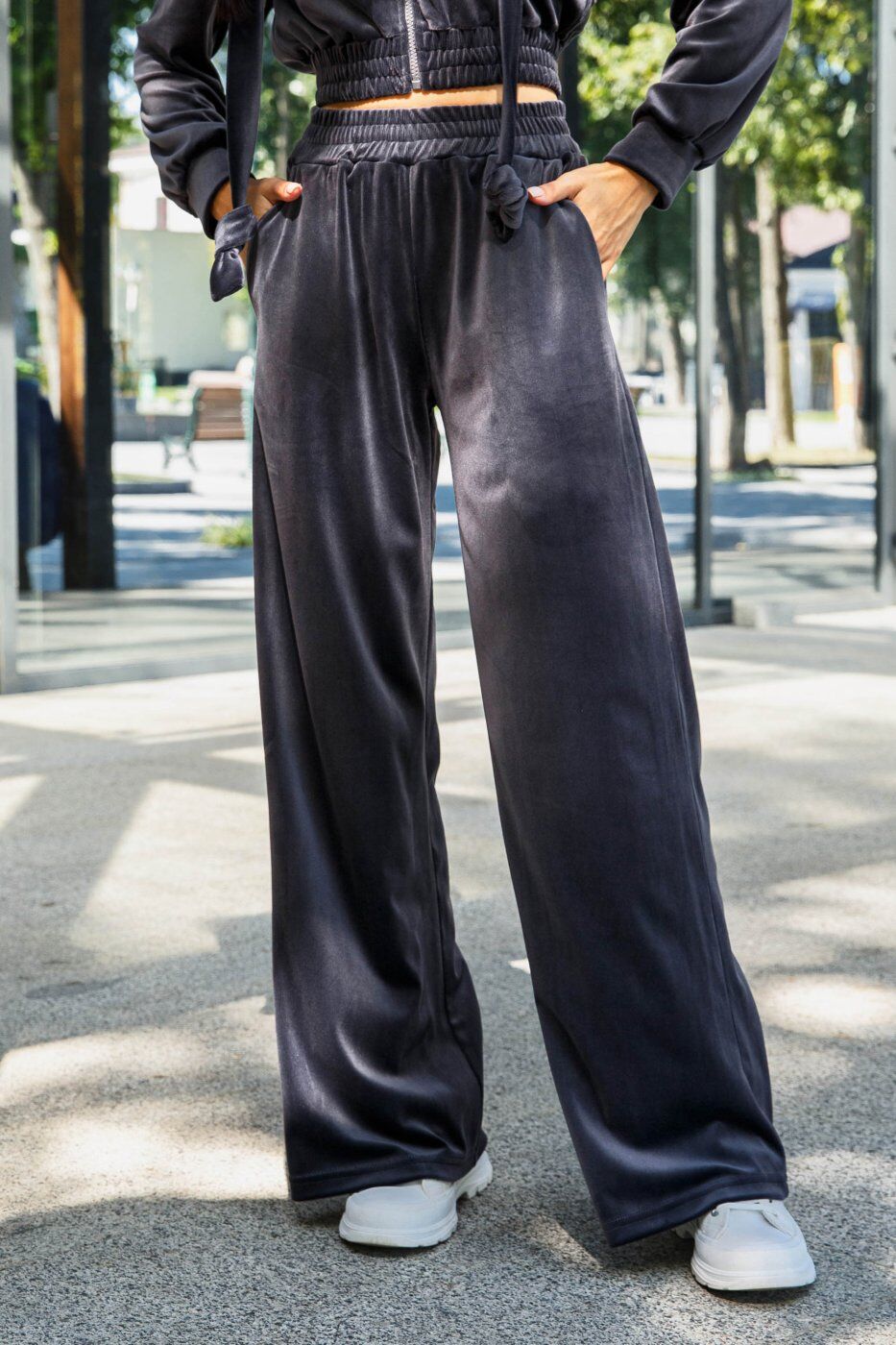 Модний жіночий костюм з велюру у стилі спорт-шик. Наш новий прогулянковий костюм – двійка – чудовий вибір на теплу осінь! Головним критерієм для повсякденного одягу залишається комфорт. У нашій новій моделі Ви почуватиметеся зручно та комфортно, адже це так важливо у сучасному ритмі життя. Модель костюма поєднує у собі світшот з довгими рукавами з капюшоном та штани – кюлоти вільного крою.