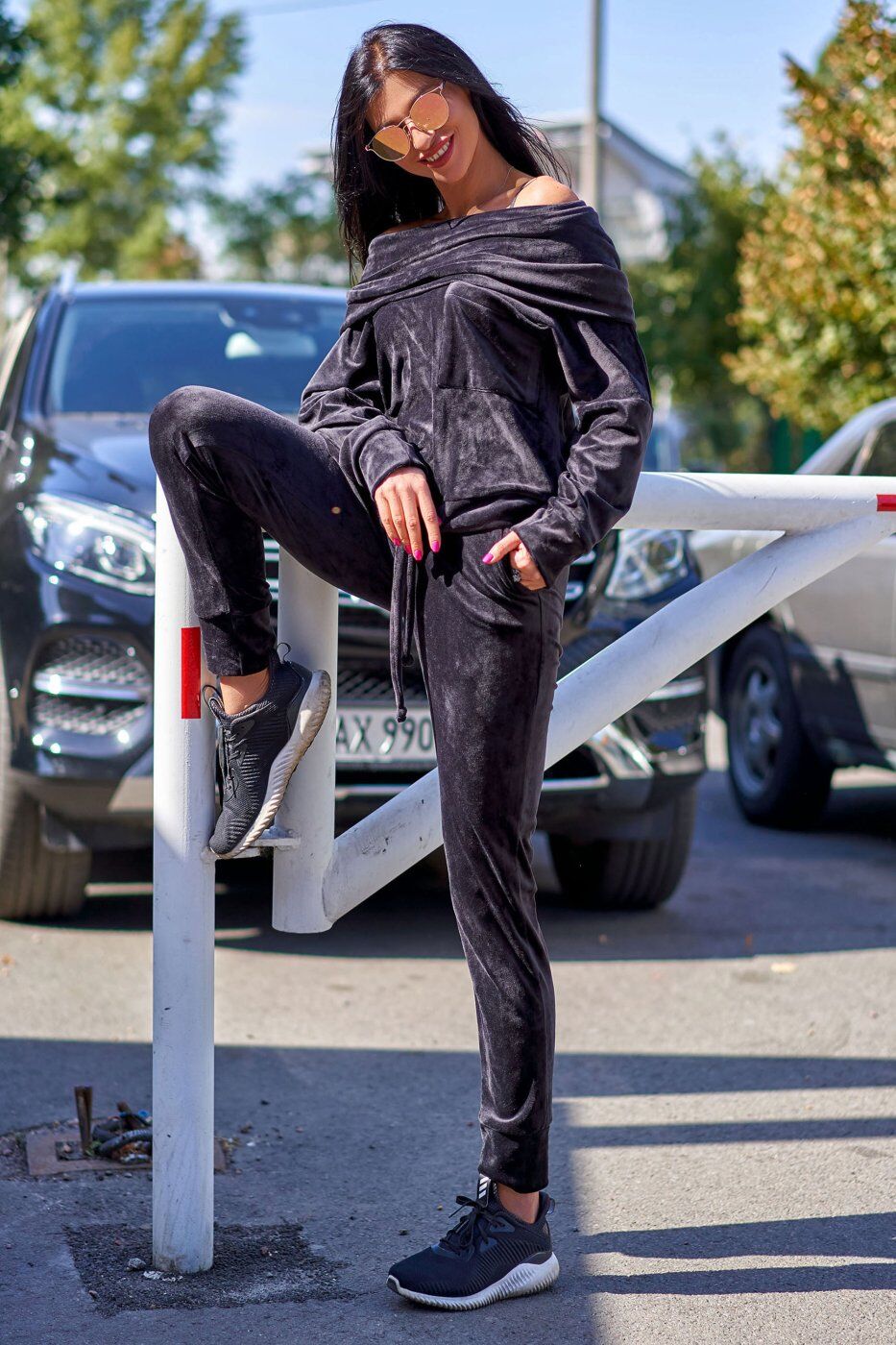 Неймовірний костюм із оксамитової тканини.
