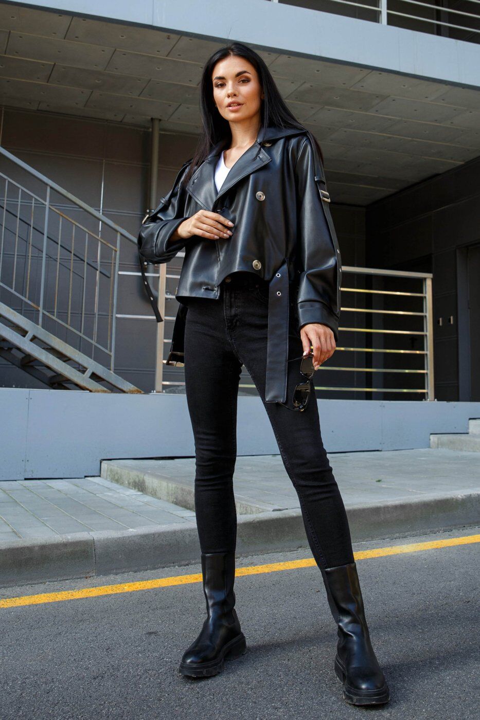 Косуха з легкістю стане універсальним елементом гардеробу: вдень її можна поєднувати з повсякденними джинсами і пуловером, а ввечері - з жіночним платтям. Для пошиття моделі використовується м'яка штучна шкіра.