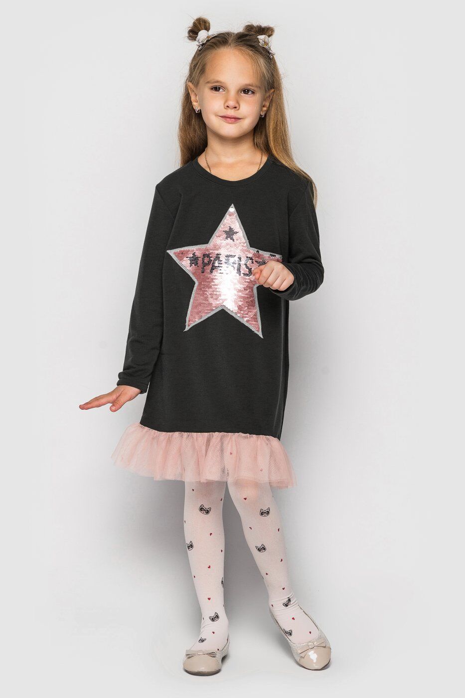 Платье свободного кроя с отделкой из сетки, нашивка из паетки в виде звезды