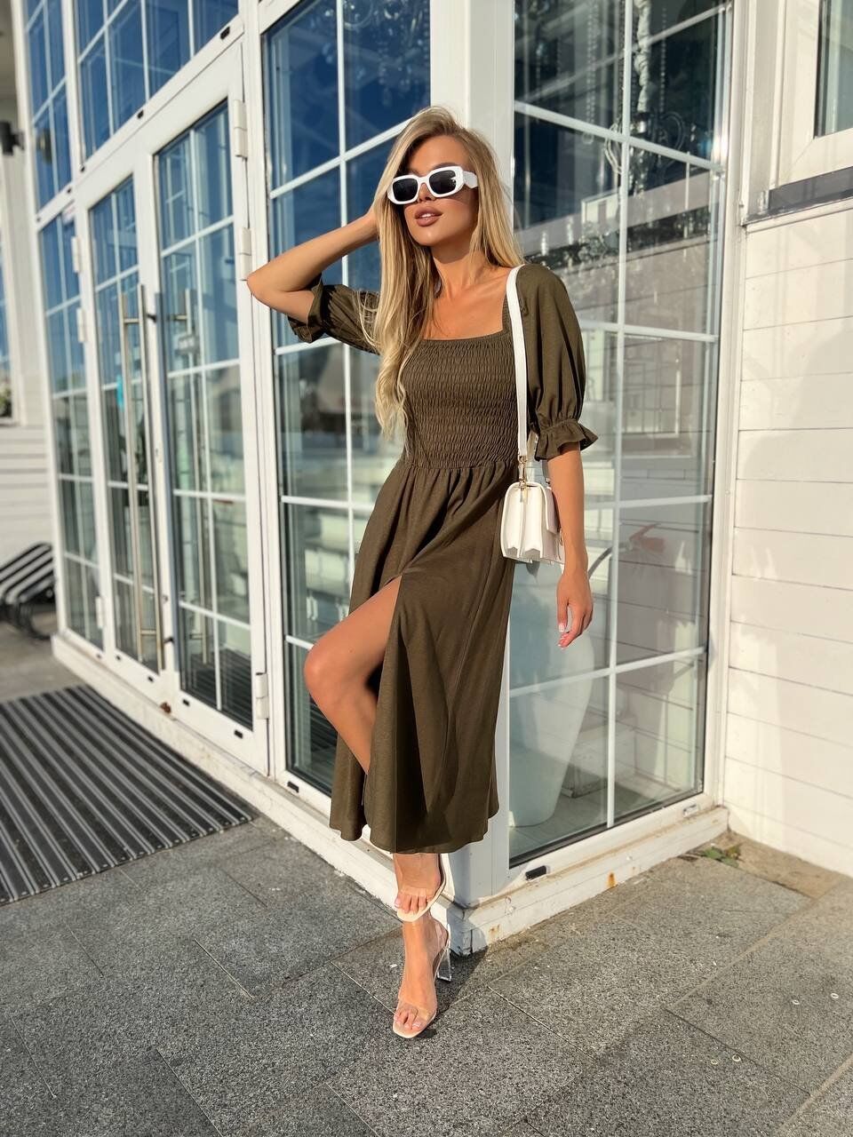 Летнее очаровательное платье из натурального льна. Самый трендовый крой этого сезона Удобно носить без бюстгальтера