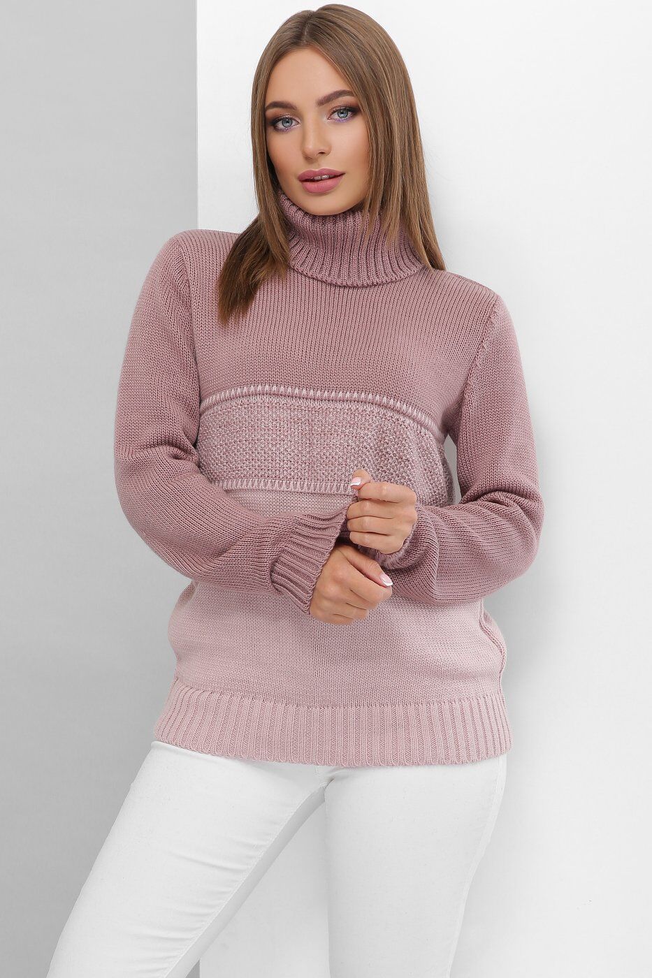 Вязаный женский свитер под горло.