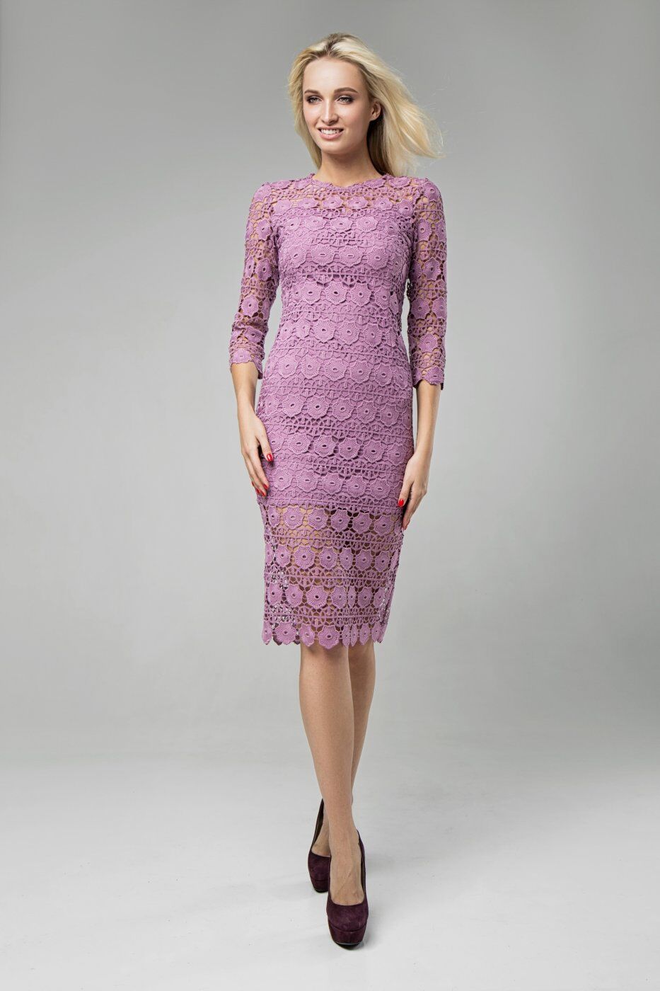 Стильное вечерние платье выполнено из кружевного гипюра подкладка: мягкий трикотаж в тон. Элегантный фасон прямого кроя с круглой горловиной и втачным рукавом 3/4. Для удобство по спинке предусмотрена потайная молния и разрез по низу. Эффектное платья для зажигательных вечеринок, и торжественных случаев.