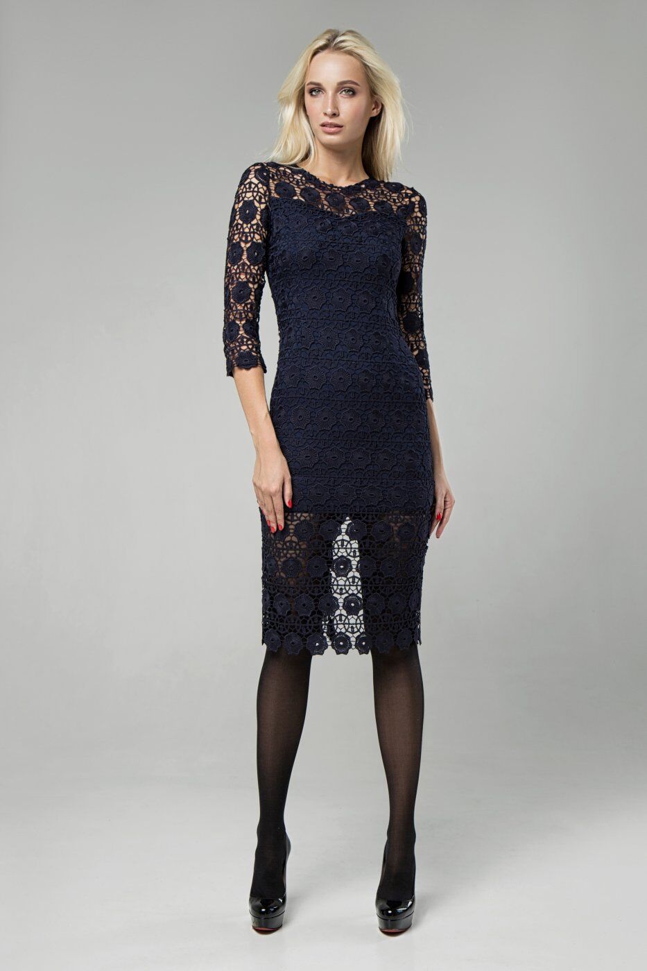 Стильное вечерние платье выполнено из кружевного гипюра подкладка: мягкий трикотаж в тон. Элегантный фасон прямого кроя с круглой горловиной и втачным рукавом 3/4. Для удобство по спинке предусмотрена потайная молния и разрез по низу. Эффектное платья для зажигательных вечеринок, и торжественных случаев.
