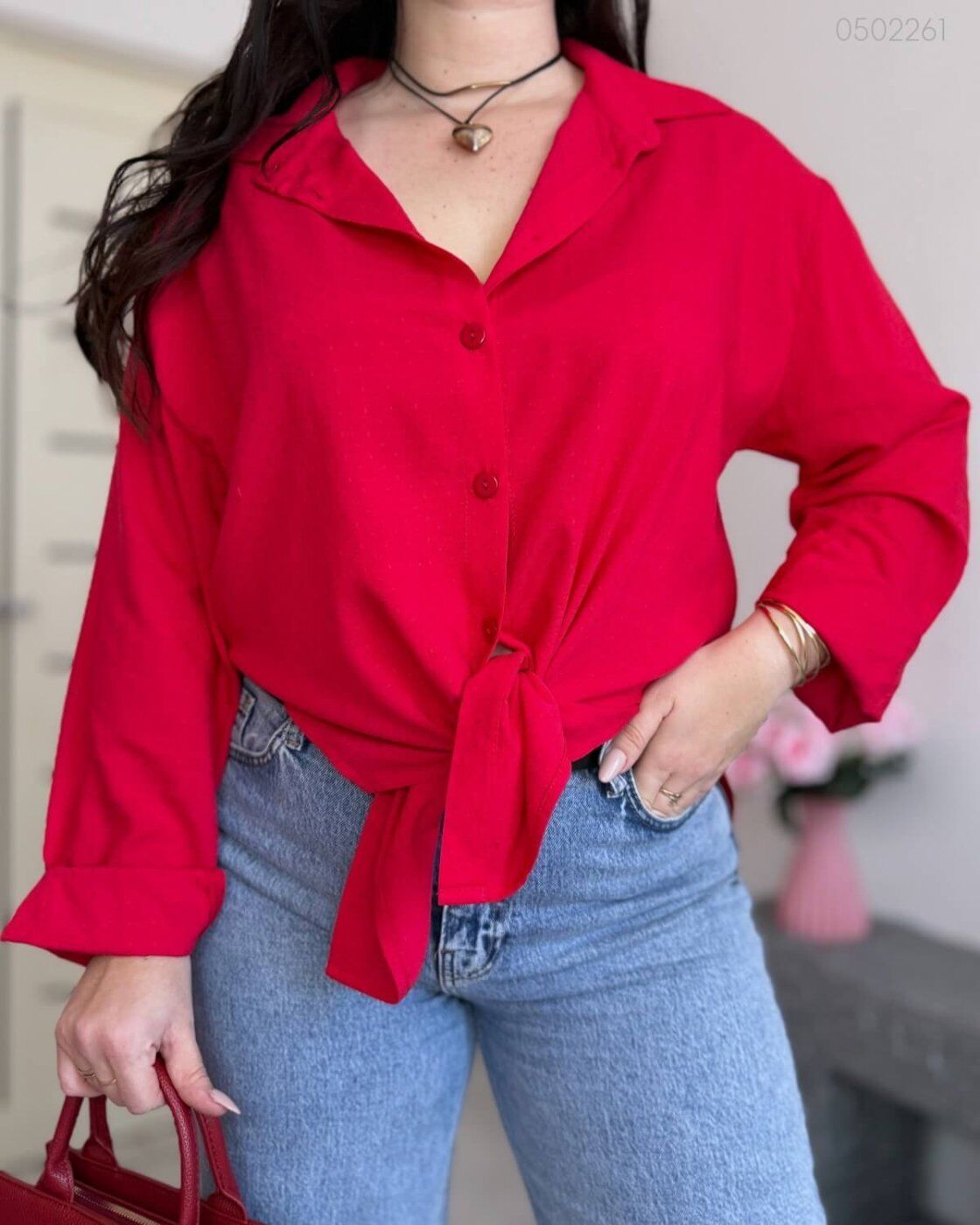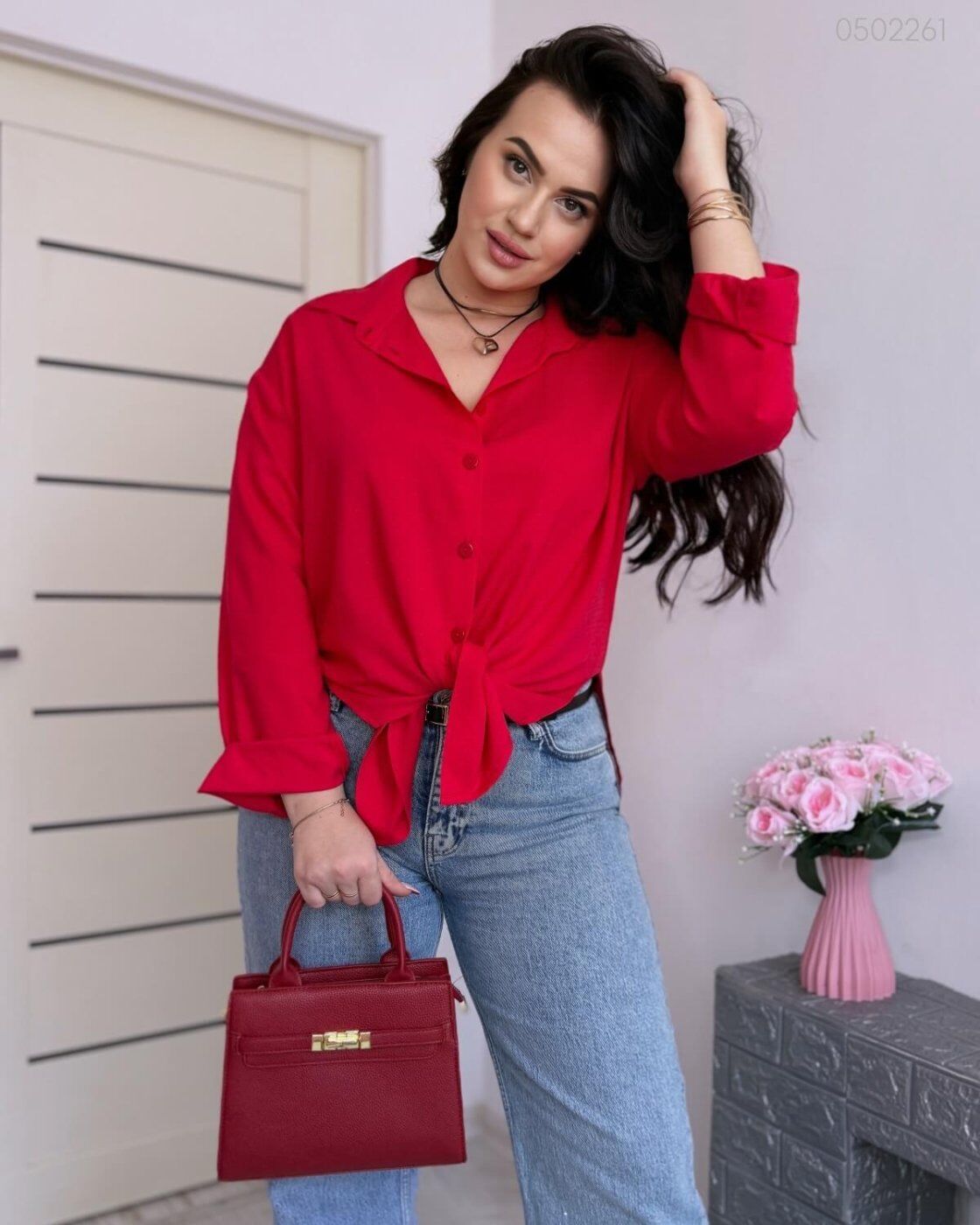 Красная Удлиненная Блуза Марми Свободного Кроя 0502261 от PEONY
