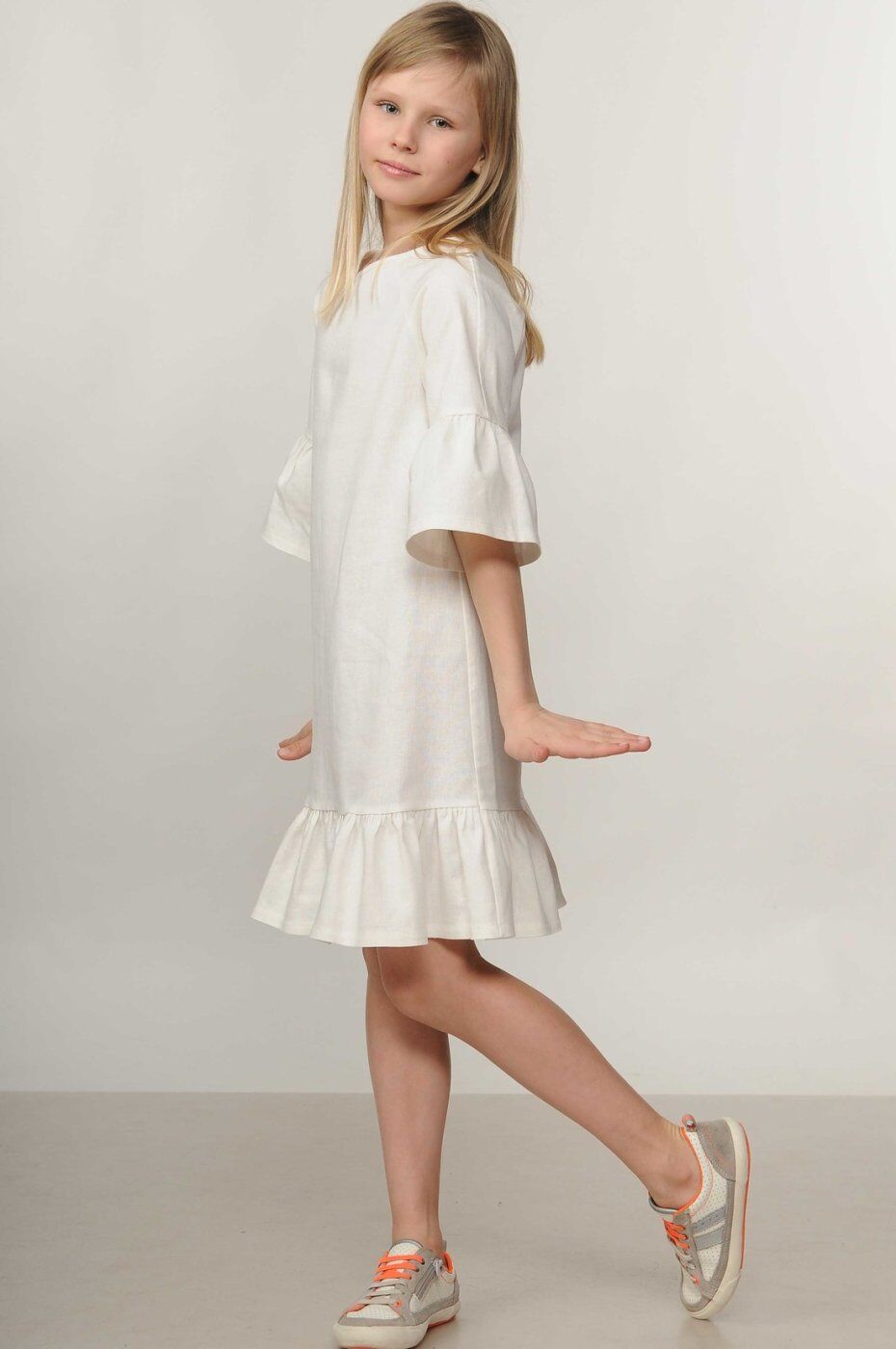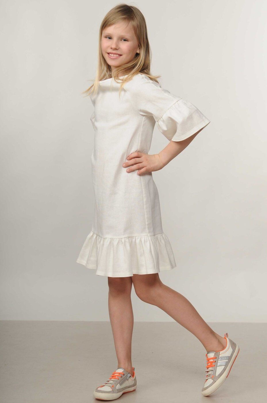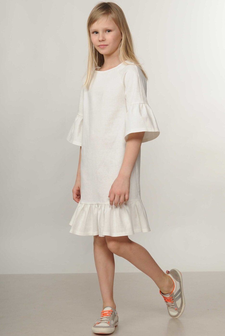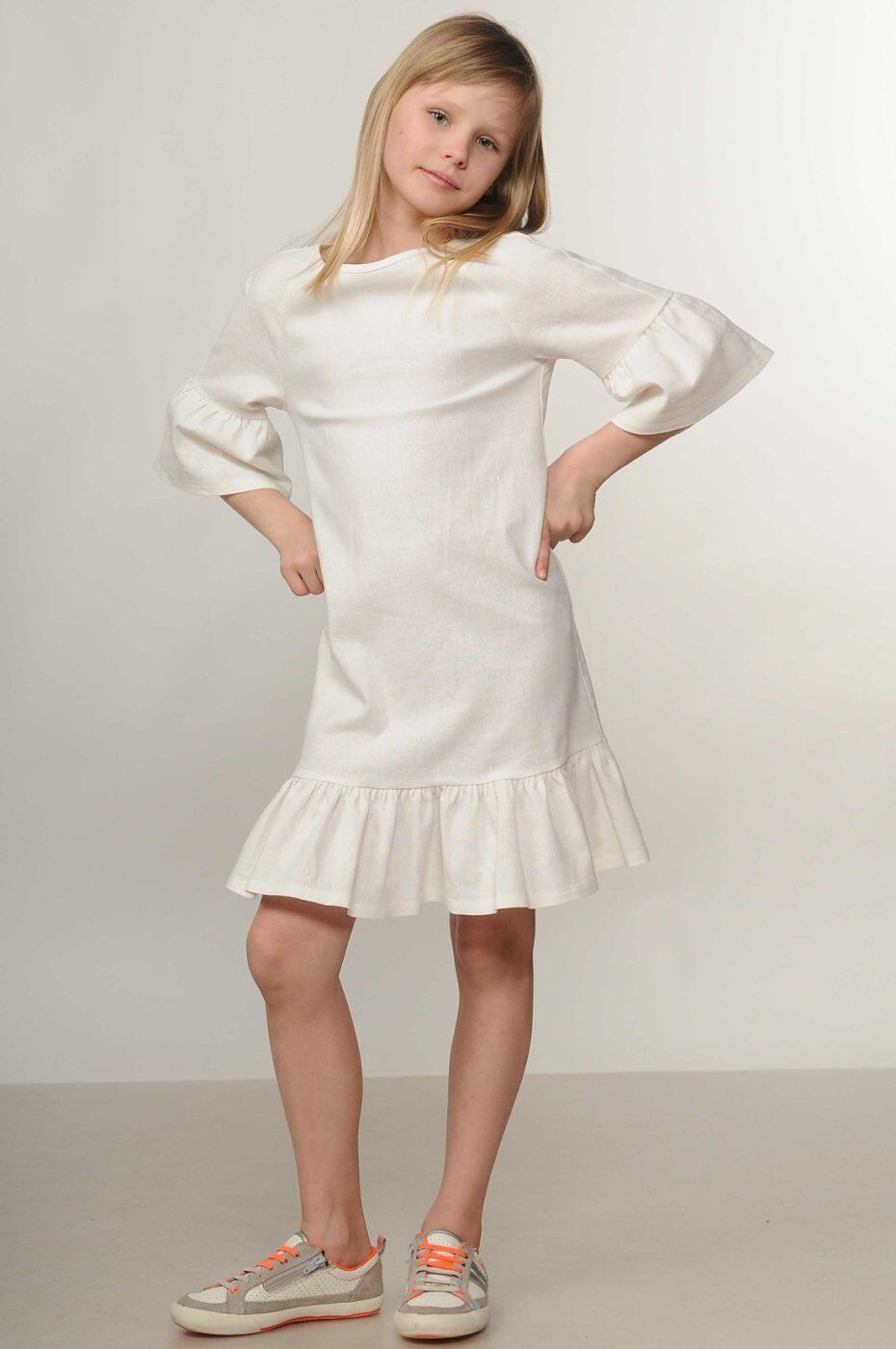 Чарівно дівоче плаття А-силуету з широкою рюшею по низу та рукавом-реглан - додасть образу нотки романтики та легкості руху. Сукня вільного силуету для практичних та стильних маленьких модниць.