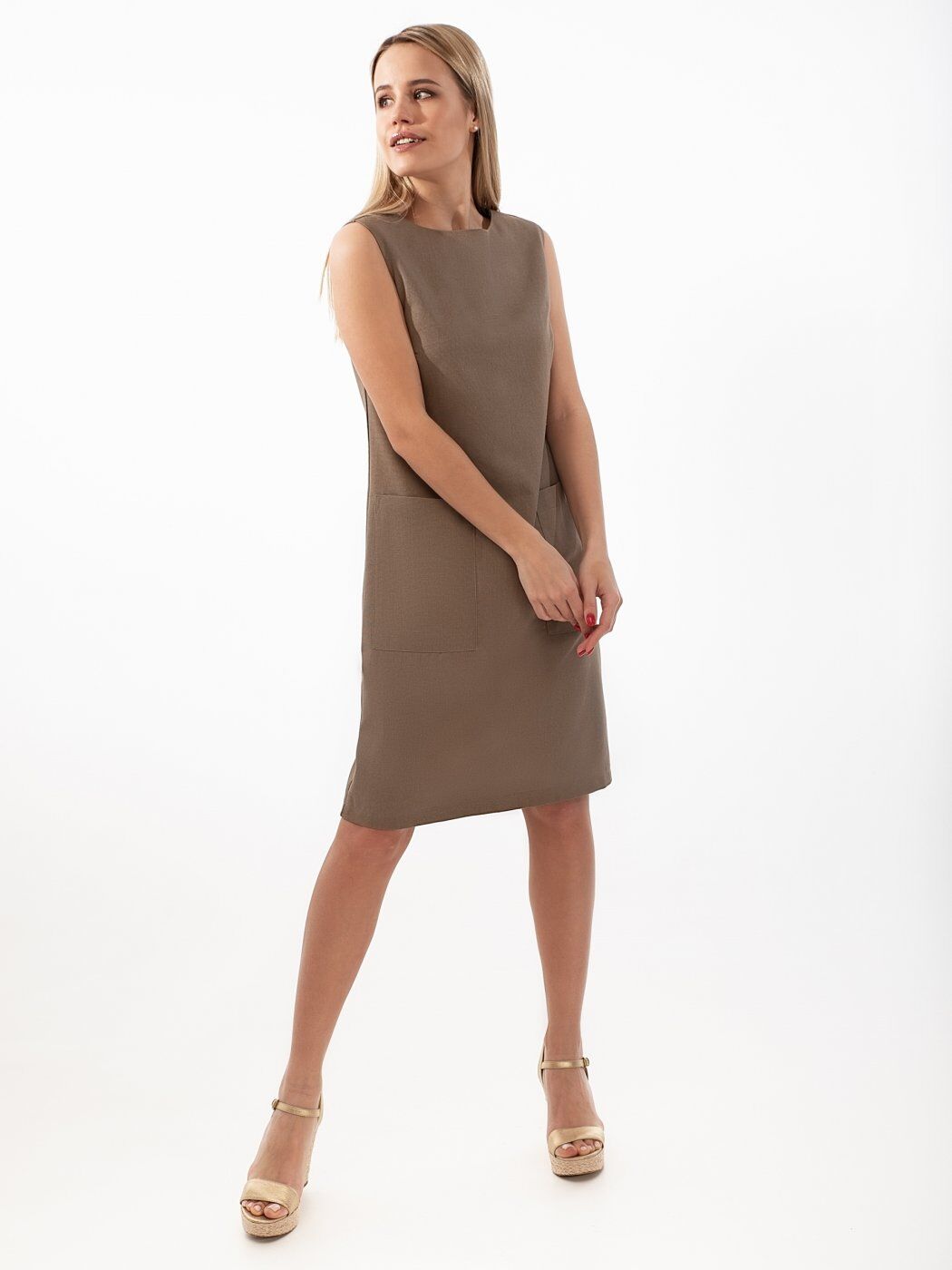 Платье 200333/2Льняное платье хорошо впишется в летний гардероб. Материал позволяет чувствовать себя комфортно в жаркую погоду. Нейтральное оформление делает наряд буквально универсальным. Можно обуть любимые туфли или босоножки и отправляться как на прогулку, так и на конференцию, деловую встречу. В прохладную погоду можно дополнить образ пиджаком или кардиганом.