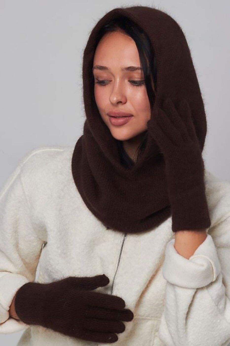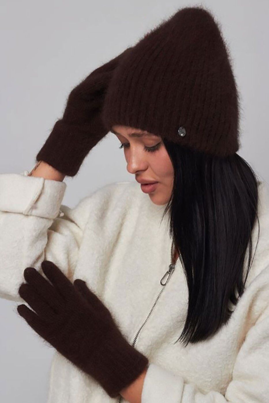 Жіночі ангорові рукавички шоколадного кольору 4496451 от Garne