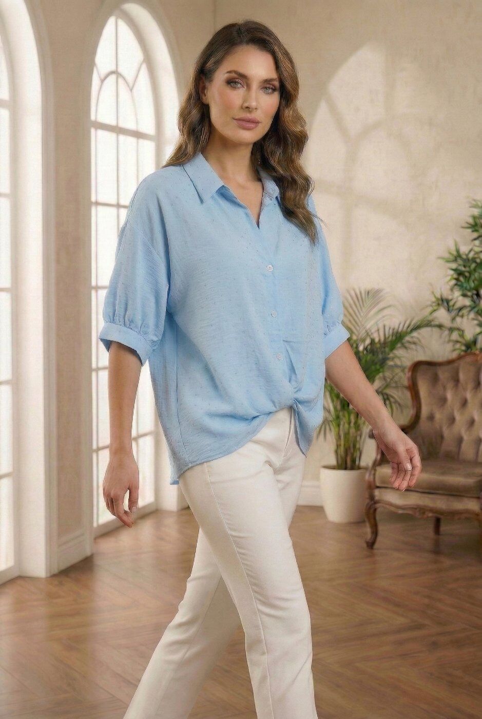 Легка та стильна сорочка з камінцями, виготовлена з натуральної суміші віскози та льону. Така тканина поєднує м’якість, повітропроникність і приємну текстуру, що забезпечує комфорт протягом усього дня. Сорочка добре пропускає повітря, не парить і чудово підходить для теплої пори року.Модель має універсальний крій, який гарно сідає по фігурі та легко поєднується з джинсами, штанами або спідницями. Вона стане чудовим вибором як для повсякденних образів, так і для більш елегантних луків.Переваги:натуральна та дихаюча тканиналегка та приємна до тіластильний та універсальний дизайнідеально підходить для весни та літаСорочка стане базовою річчю у вашому гардеробі та допоможе створювати комфортні й сучасні образи.