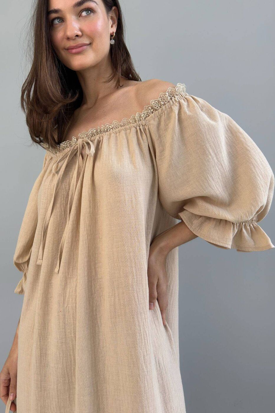 Тканина лляного переплетіння. Склад льон 45%, віскоза 35%, поліестер 20%.