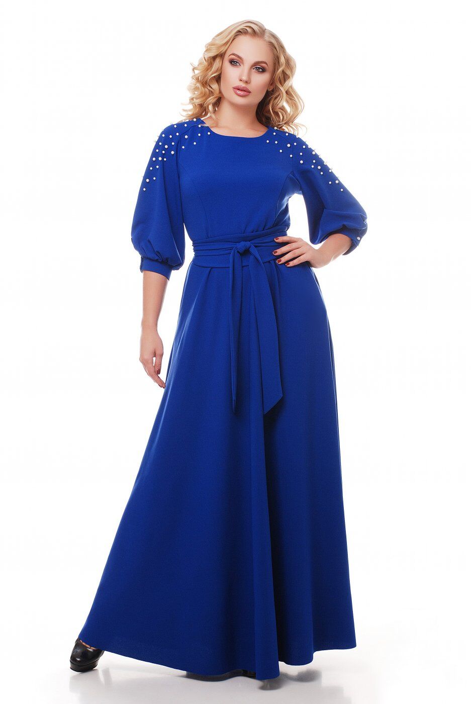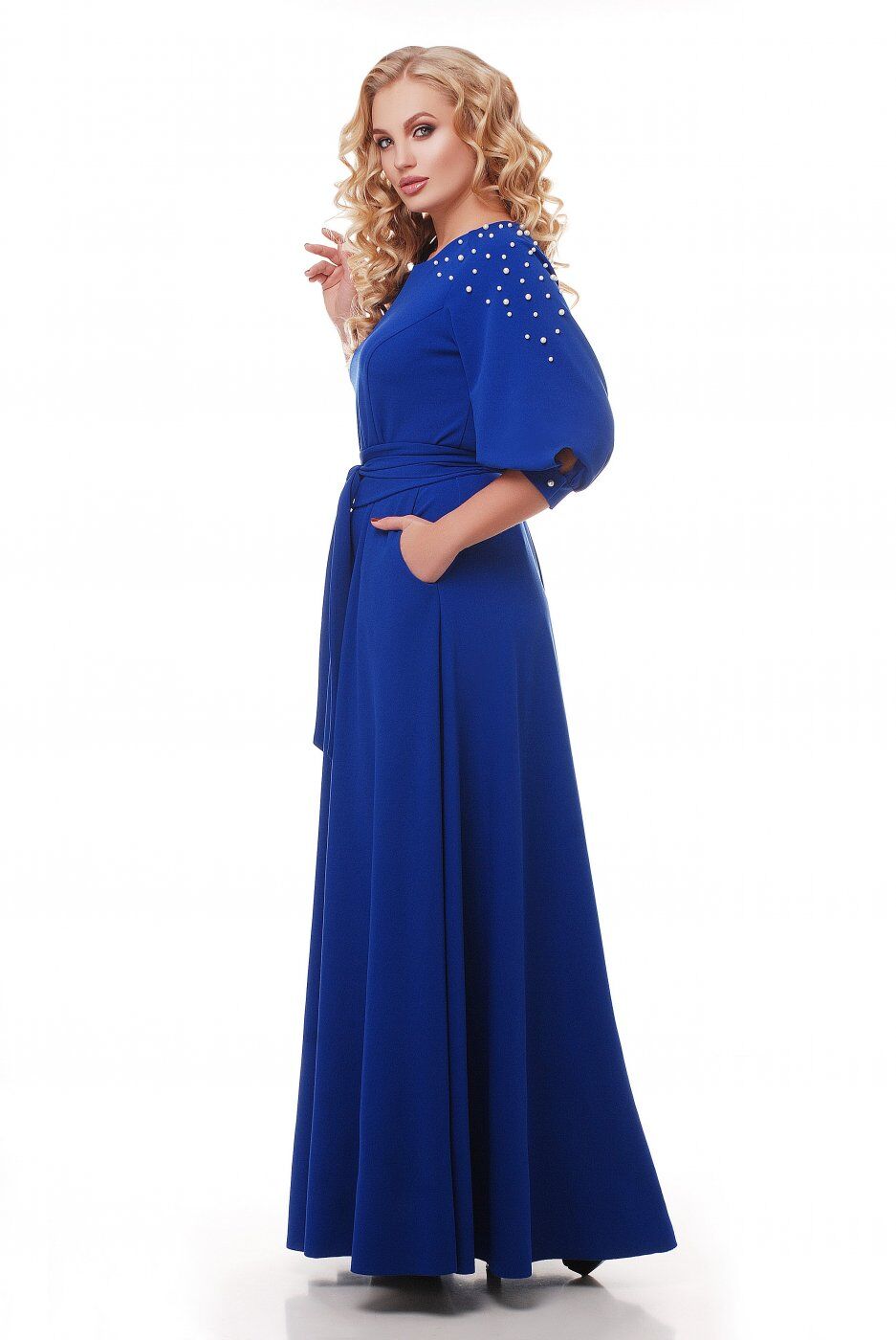 Модель макси. Отрезное по линии талии с клешевым низом "полусолнце" и карманами. С рукавом 3/4, реглан на манжете. Изголовье рукава расшито набивным жемчугом. По лифу нагрудные рельефы, по спинке центральный шов с застежкой и съемный пояс оби. Ткань креп- дайвинг. Рост модели на фото 170 см.