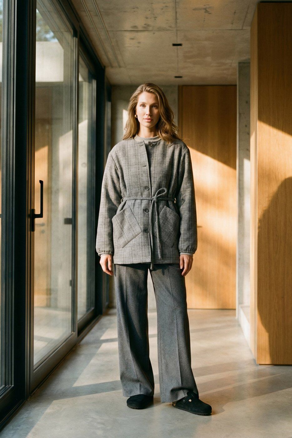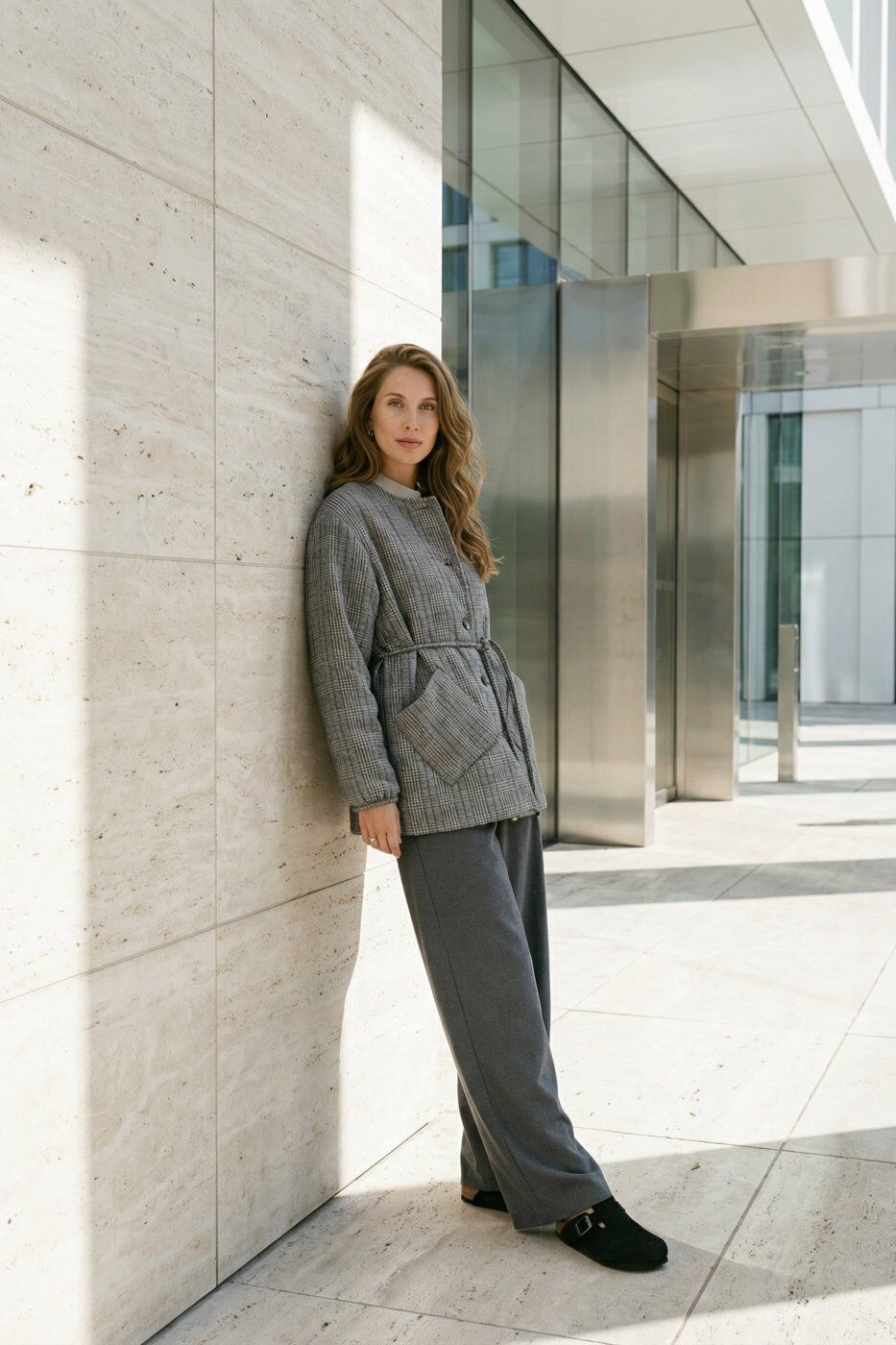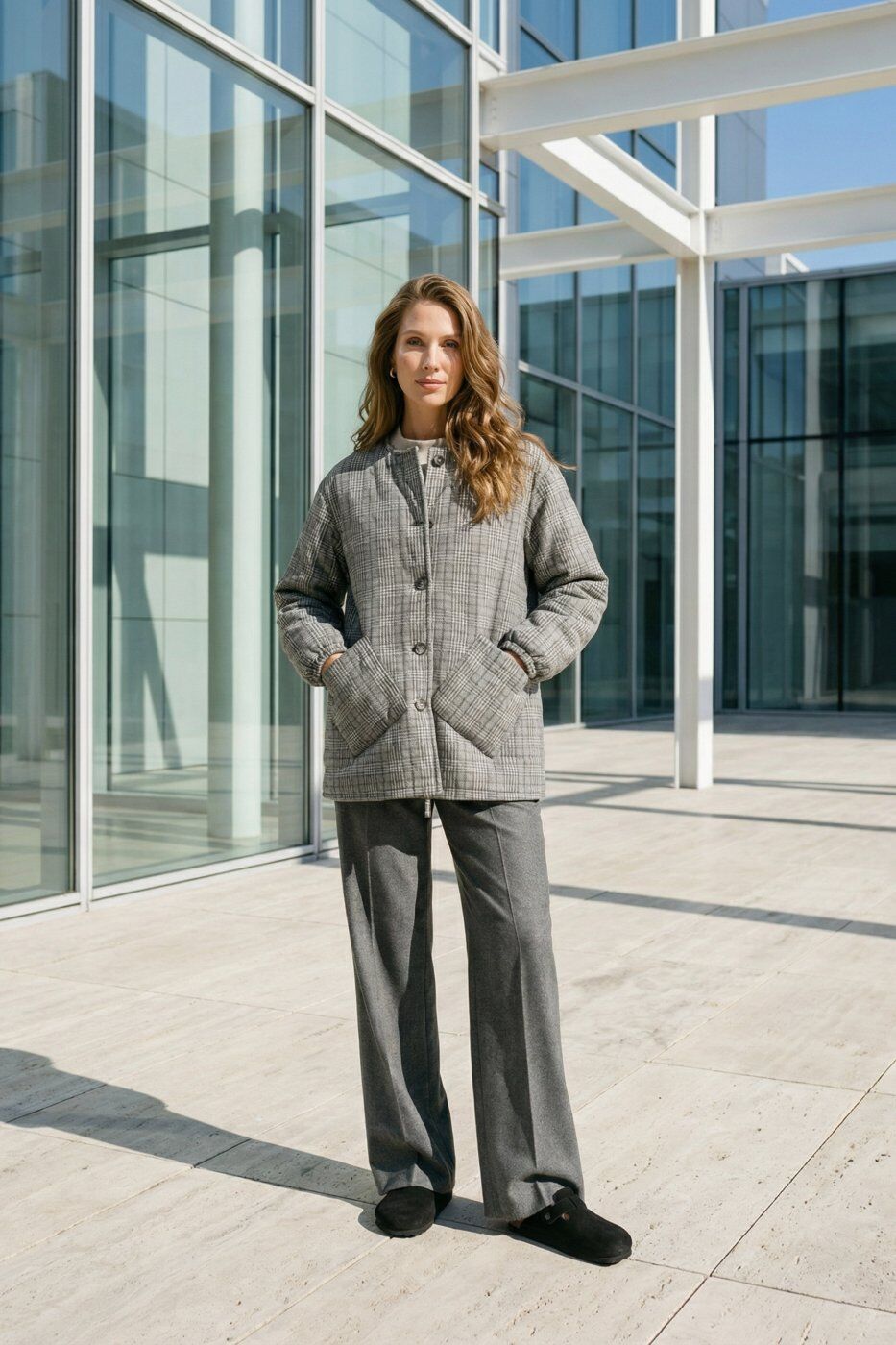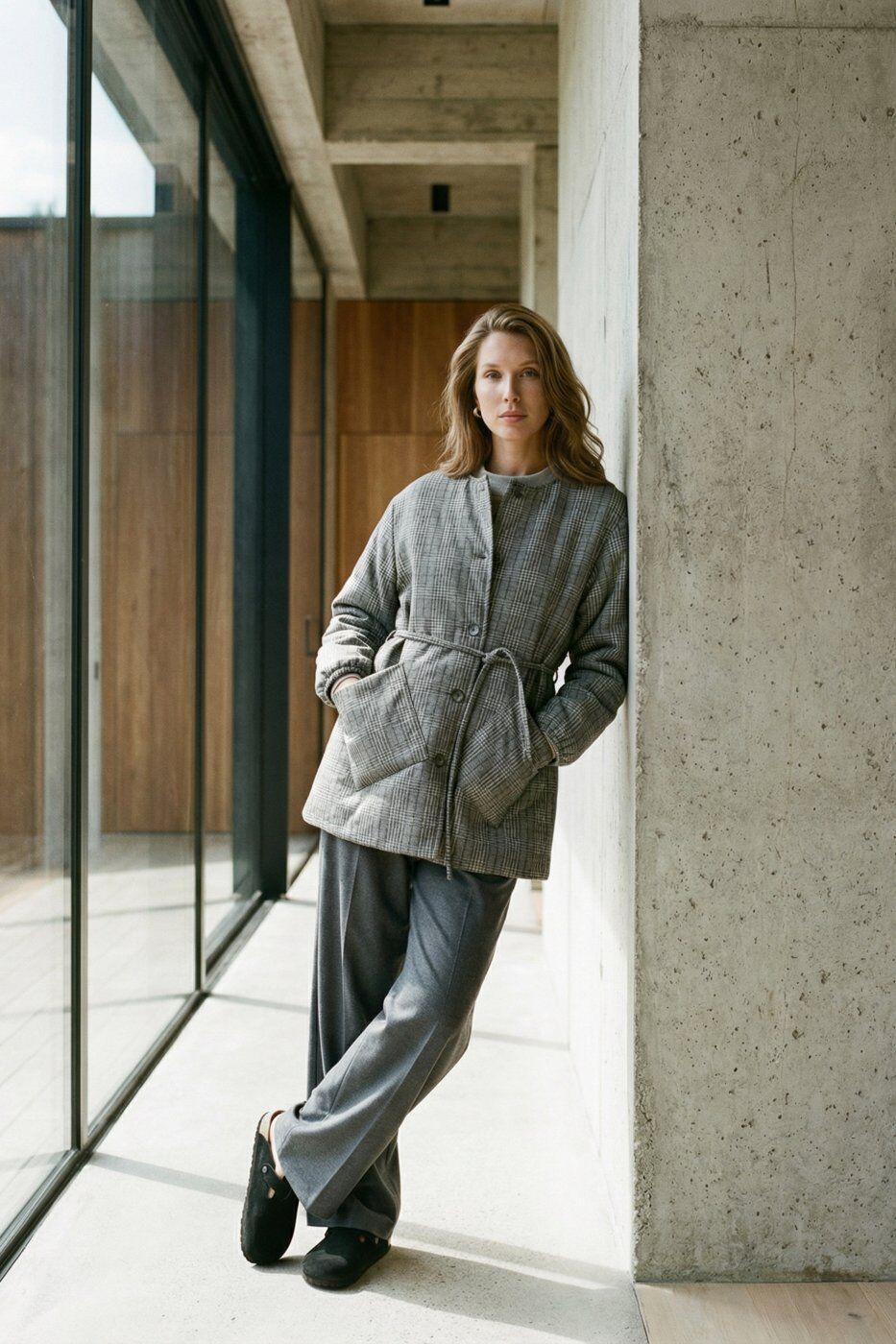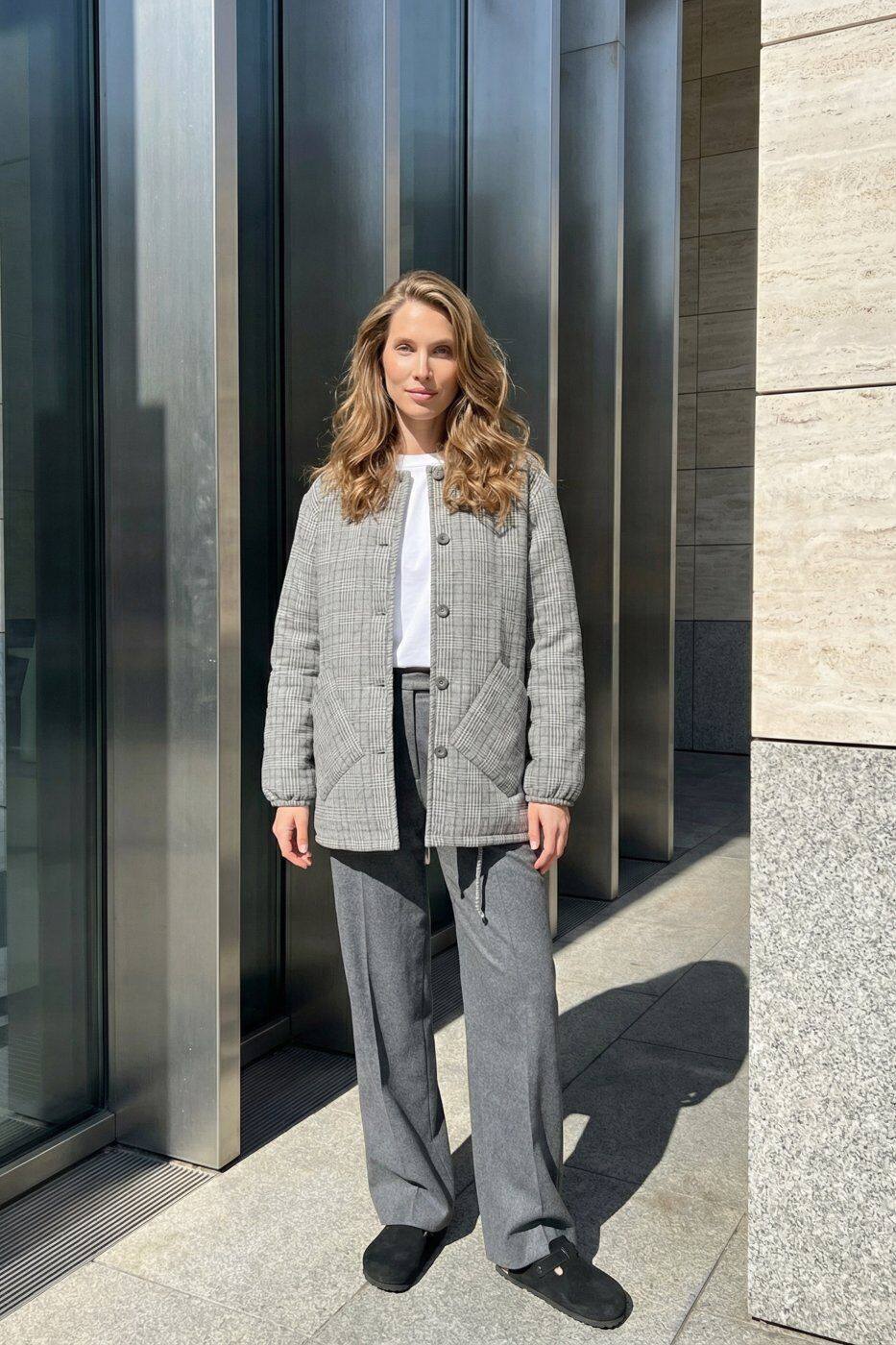 Конструктивні елементи: приспущене плече, без коміру, кишені