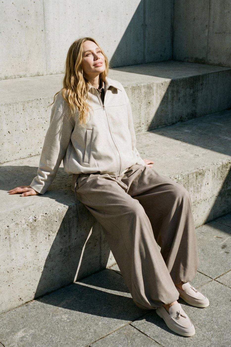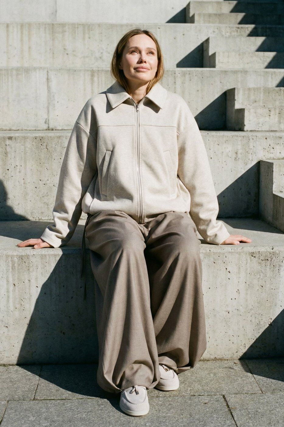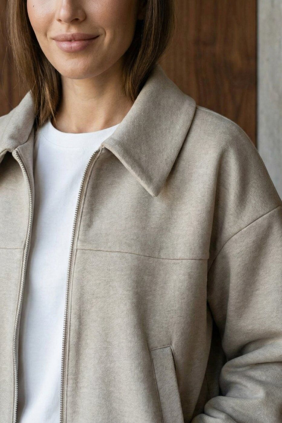 Конструктивні елементи: приспущене плече, кишені, розрізний рукав