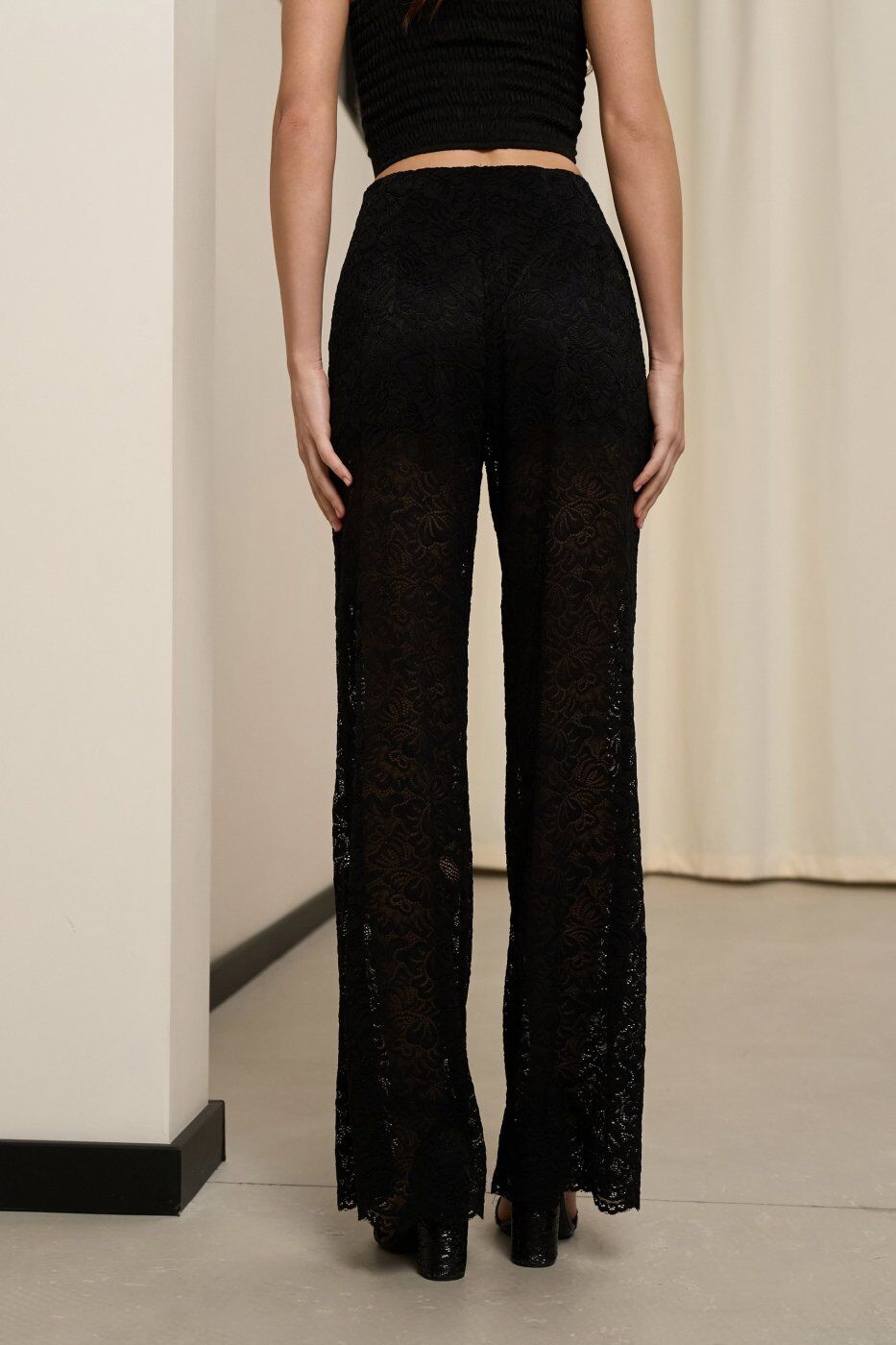 Чорні гіпюрові штани ARTMON — витончена та стильна модель, створена для особливих подій і модних повсякденних образів. Штани виконані з делікатного гіпюра з виразним квітковим візерунком, що надає силуету легкості та романтичності. Висока посадка акцентує талію та візуально подовжує ноги, а прямий крій робить модель комфортною та універсальною. Внутрішні шорти забезпечують комфорт і делікатну непрозорість, залишаючи при цьому красиву мереживну фактуру на ногах.