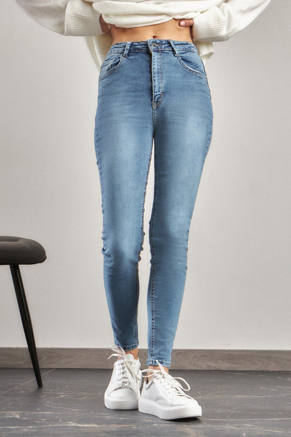 Жіночі джинси Stimma Скайні. Модель виконана з бавовняного деніму з кишенями. Завищена лінія талія . Застібається на ґудзик та блискавку. Джинси «скіні» стануть чудовою основою для твого стильного образу.