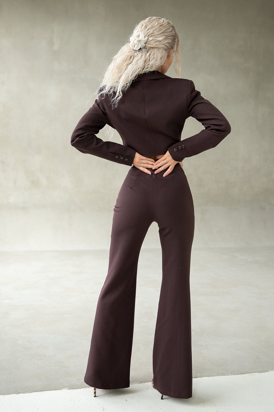 Трендовый укороченый приталенный жакет-оверзайз на подкладке. Жакет застегивается на одну пуговицу. На рукавах шлицы с пуговицами.