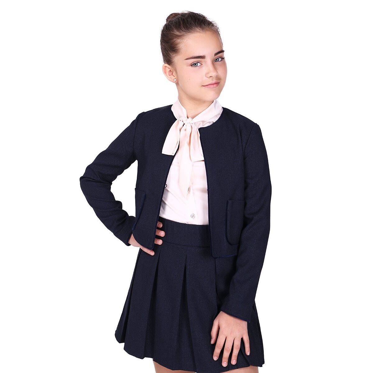 Костюм из качественного плотного материала, держит форму. Такой костюм можно носить как в школу, так и в повседневной жизни. Юбка свободного кроя А-силуэт, сзади застегивается на змейку. Пиджак с круглым воротом, застегивается на крючки. Имеет два накладных кармана спереди. Стильная модель придется по вкусу каждой принцессе. Термін збору замовлення складає від 1 до 7 робочих днів. Докладніше