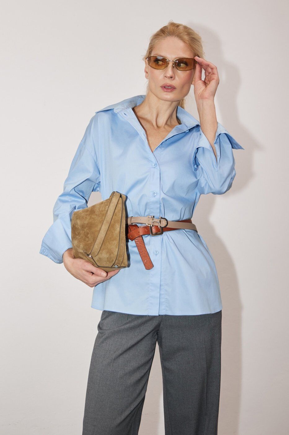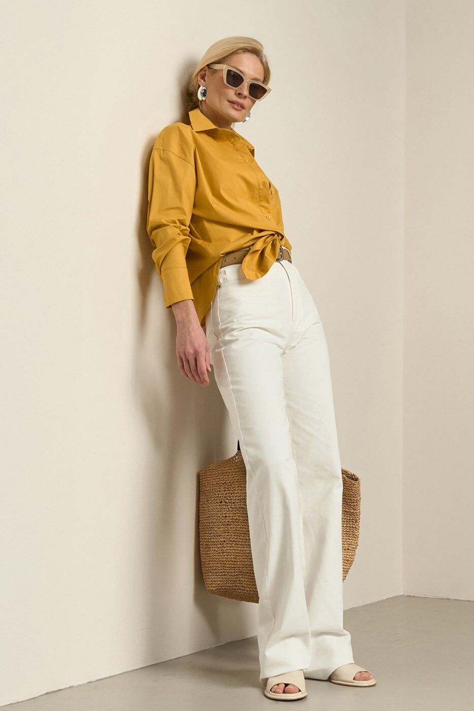 Базова бавовняна сорочка вільного крою зі спущеною лінією плеча та розрізами в бокових швах.