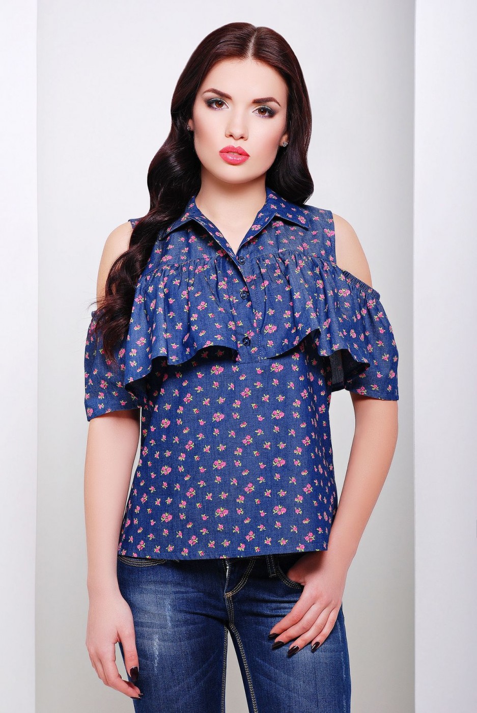 Блуза джинсовая с оборкой САРА синяя от Zefir